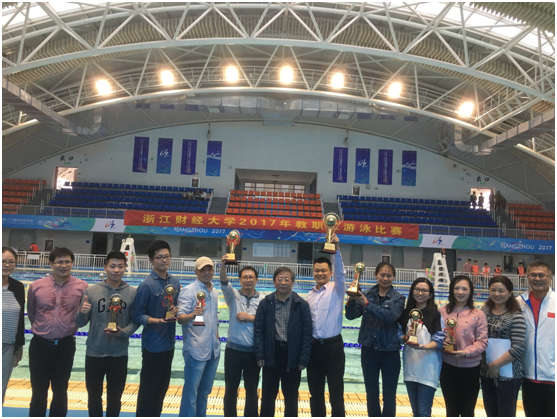 10月19日下午一点半,ued体育2017年教职工游泳比赛在校游泳馆拉开序幕。我院十一位教职工代表参加此次比赛,经过激烈角逐,我院荣获个人一等奖一项,二等奖两项,三等奖三项,获得团体总分75分,总分在全校各参赛队伍中排名第一。