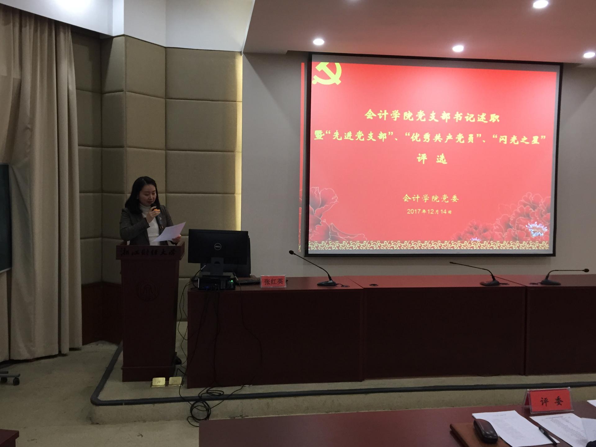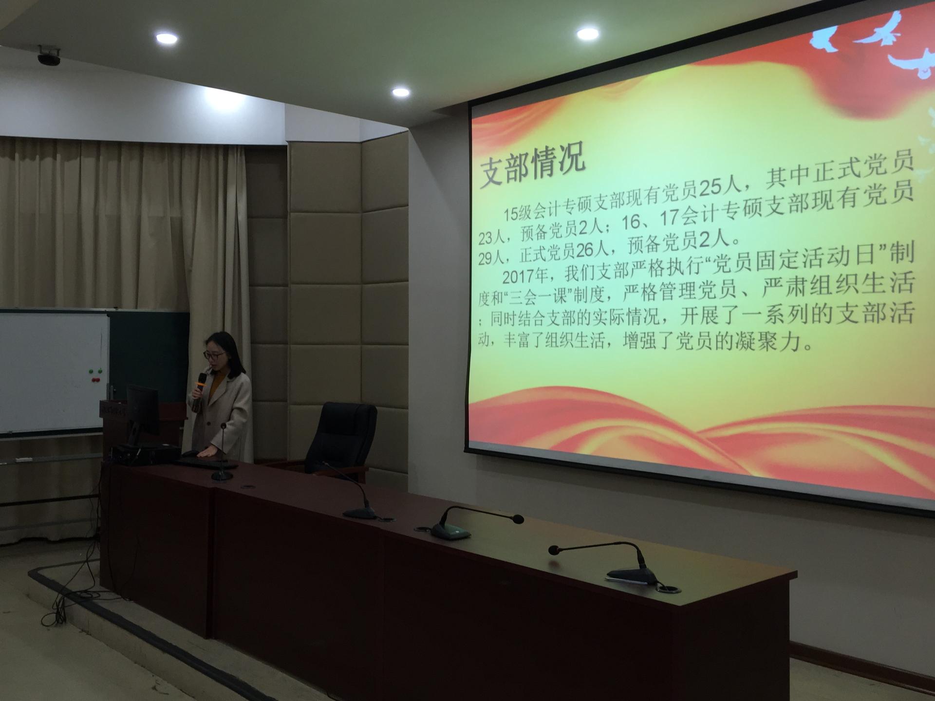 16、17级会计学硕党支部书记诸烨倩进行了2017年度述职汇报