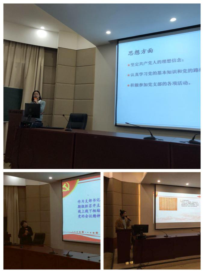 随后,17位党支部书记按照抽签顺序依次以PPT汇报的方式进行述职汇报。各党支部书记述职内容主要包括履行职责情况、思想政治工作情况、党员发展培养情况、党支部创新工作和所取得的成效、存在的问题、下一步工作计划等方面。