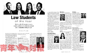 全美各大法学院,每年都有资格向《National Jurist》推荐最多一名优秀的法学生参与“全美年度法学生”评选。