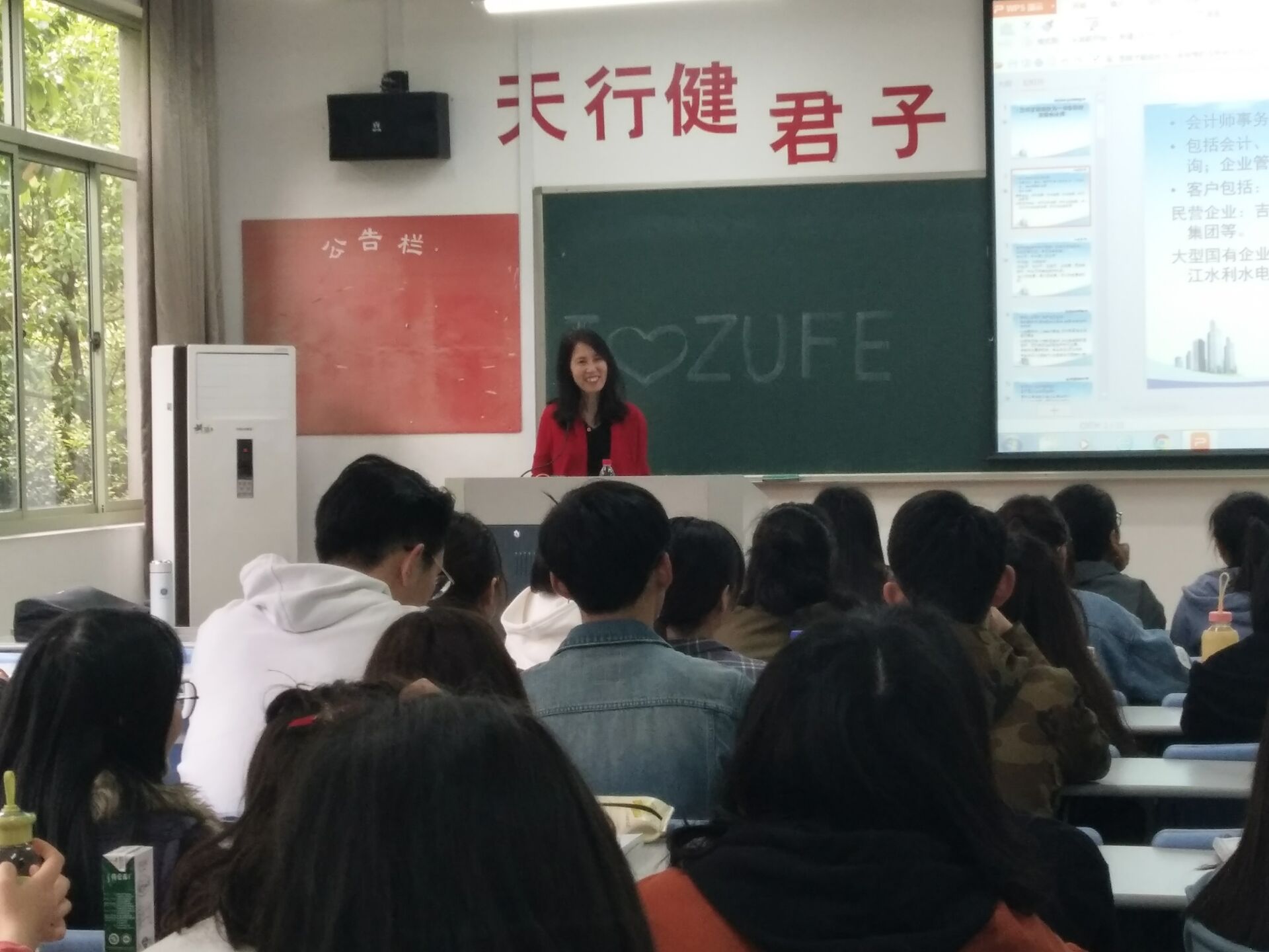 4月16日上午,浙江天平会计师事务所有限责任公司董事长余俊仙女士应邀来我院开展基地精英进课堂讲座活动,厉国威老师向同学们介绍天平事务所及嘉宾情况,16审计各班学生参加此次活动。