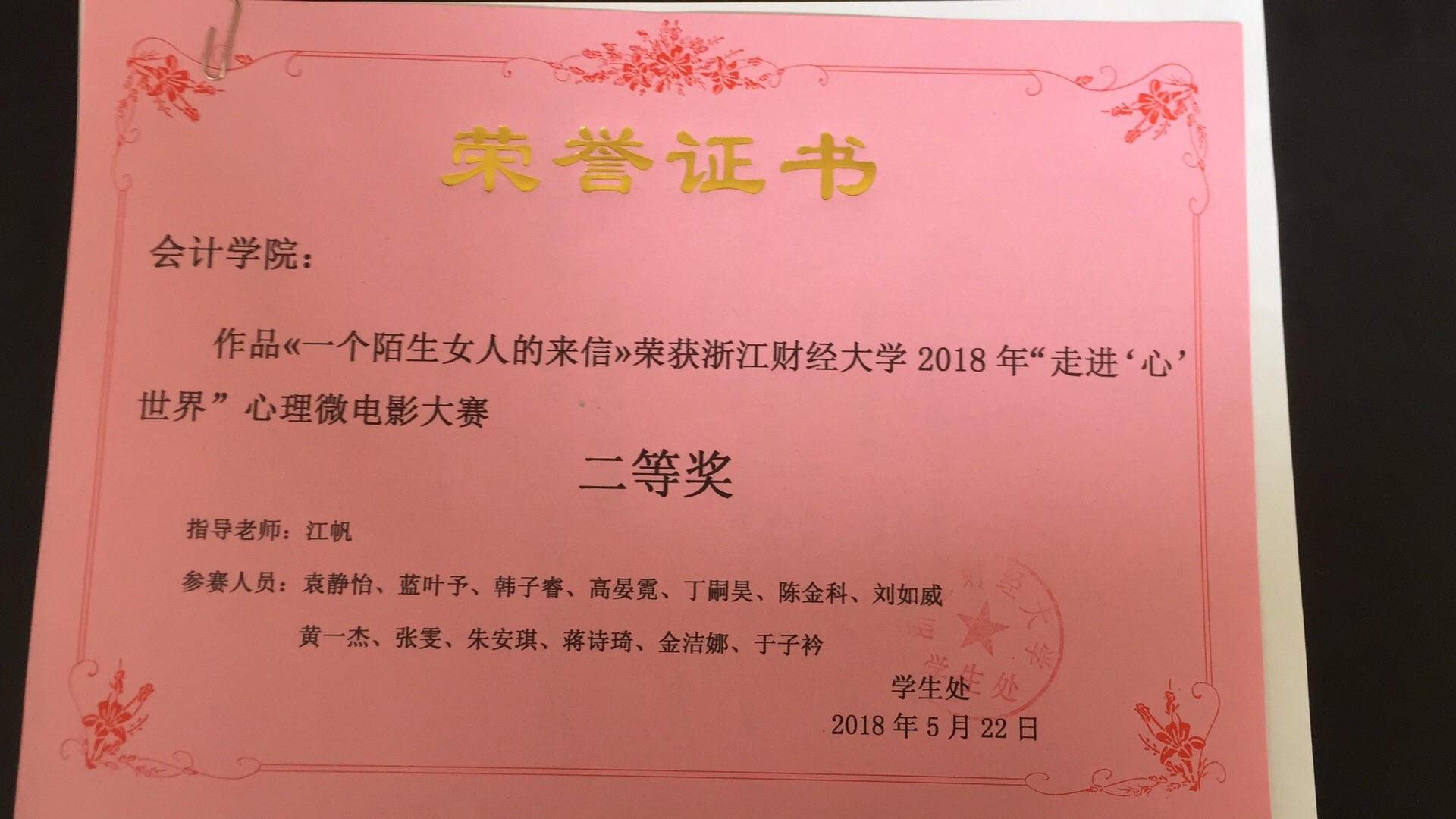会计学院心理辅导站、阳光蚂蚁工作坊在此次心理健康宣传周中开展了精彩纷呈的心理健康教育活动,由其创作的微电影《一个陌生女人的来信》荣获2018年ued体育 心理微电影大赛二等奖,由17CIMA&17资产评估共同创作的《深夜秋田家》也获得了广泛好评。