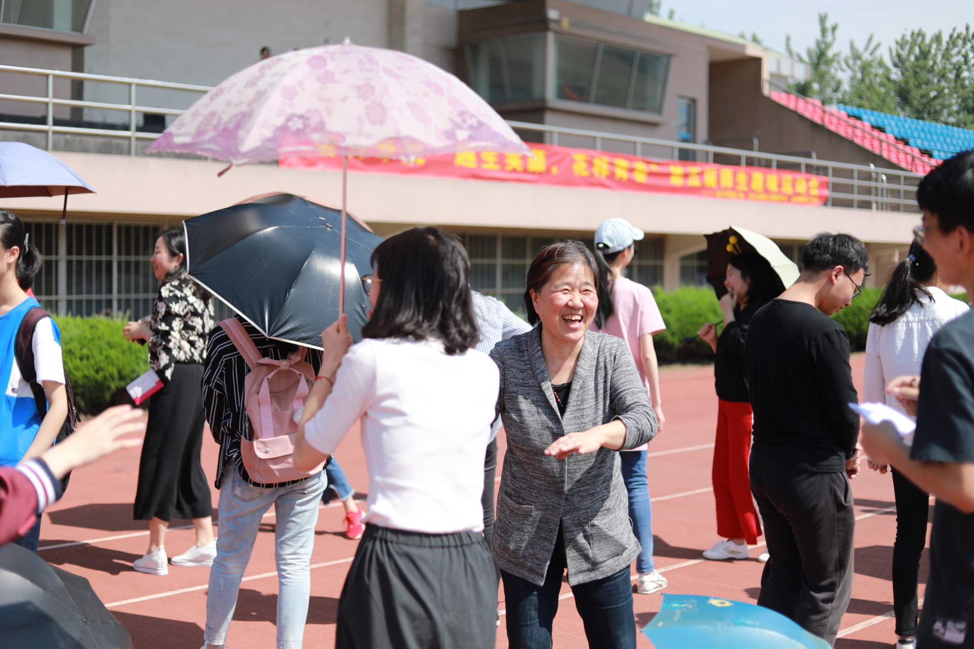 “趣生笑颜 ·花样青春”师生趣味运动会则通过体育活动和趣味游戏相结合的方式增进师生之间的交流合作,促进彼此的沟通。运动会让师生缓解了压力,增强大学生活的趣味性,还加强大家的团队意识,在团队合作中体验快乐,收获成长。