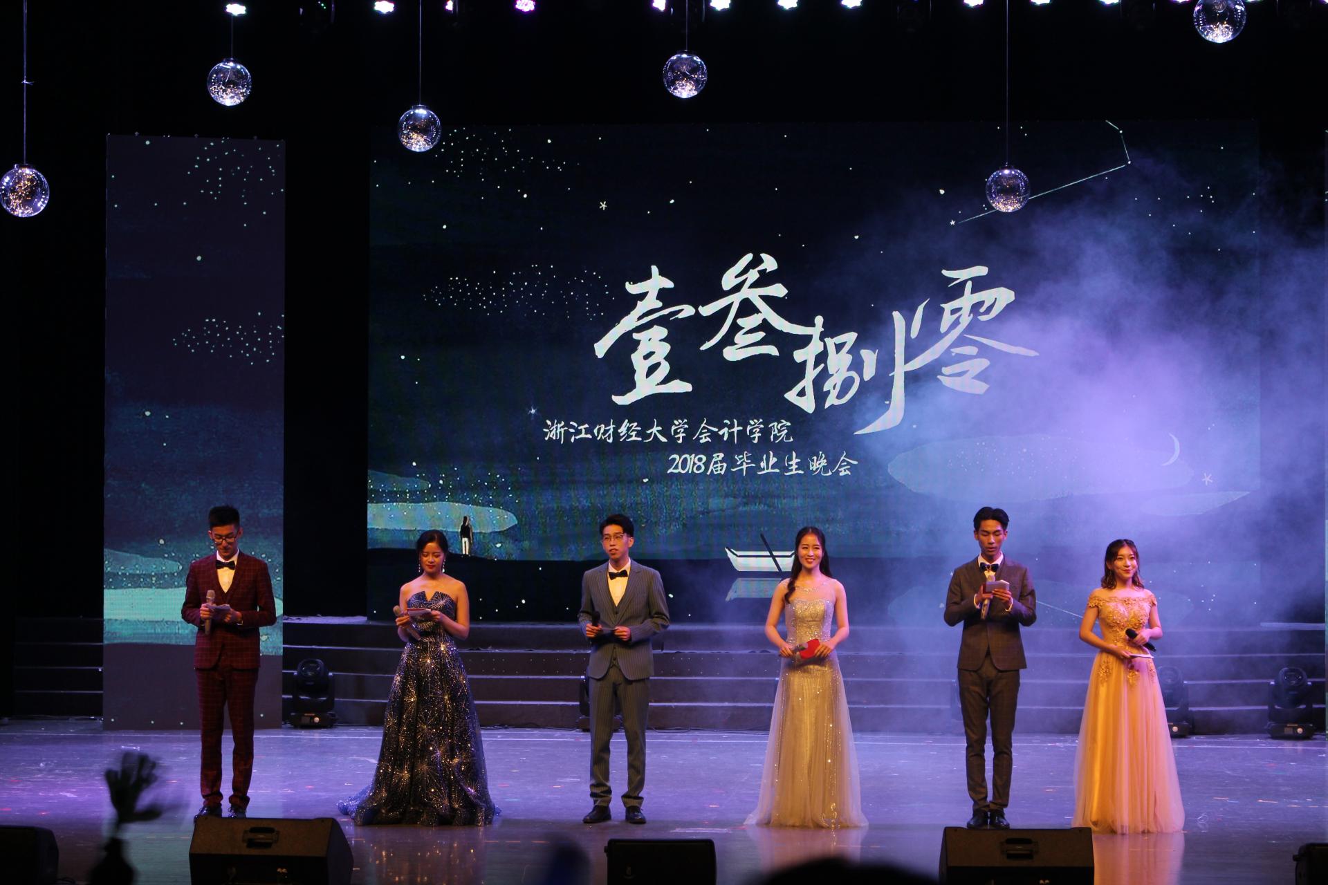 本次晚会共分为拾捌、拾玖、贰拾、贰拾壹四个篇章。首先由张红英书记上台致辞,道出浓浓师生之情。各位领导分别为考研升学、ACCA统考全科通过、优秀毕业生们颁奖,以前行的榜样激励后生。会计学院一直致力于“AIIC"四化一风人才培养,在本次晚会也得以体现。本场晚会邀请到了毕业生家长代表们与其子女带来包含舐犊之情的朗诵,家长对孩子们的期盼、对学校的感激在话语间流露。国际生代表们为本场晚会带来表演《黄种人》,将现场气氛推上高潮。此外,杭州师范大学、浙江理工大学、浙江水利水电学院等兄弟院校十佳歌手们也带来了歌曲串烧,表达了一直以来与我院良好的合作与情谊。期间毕业班带班辅导员与毕业生班长代表的发言,饱含热泪,触人心弦。晚会在院歌《会乐梦》中落下帷幕。