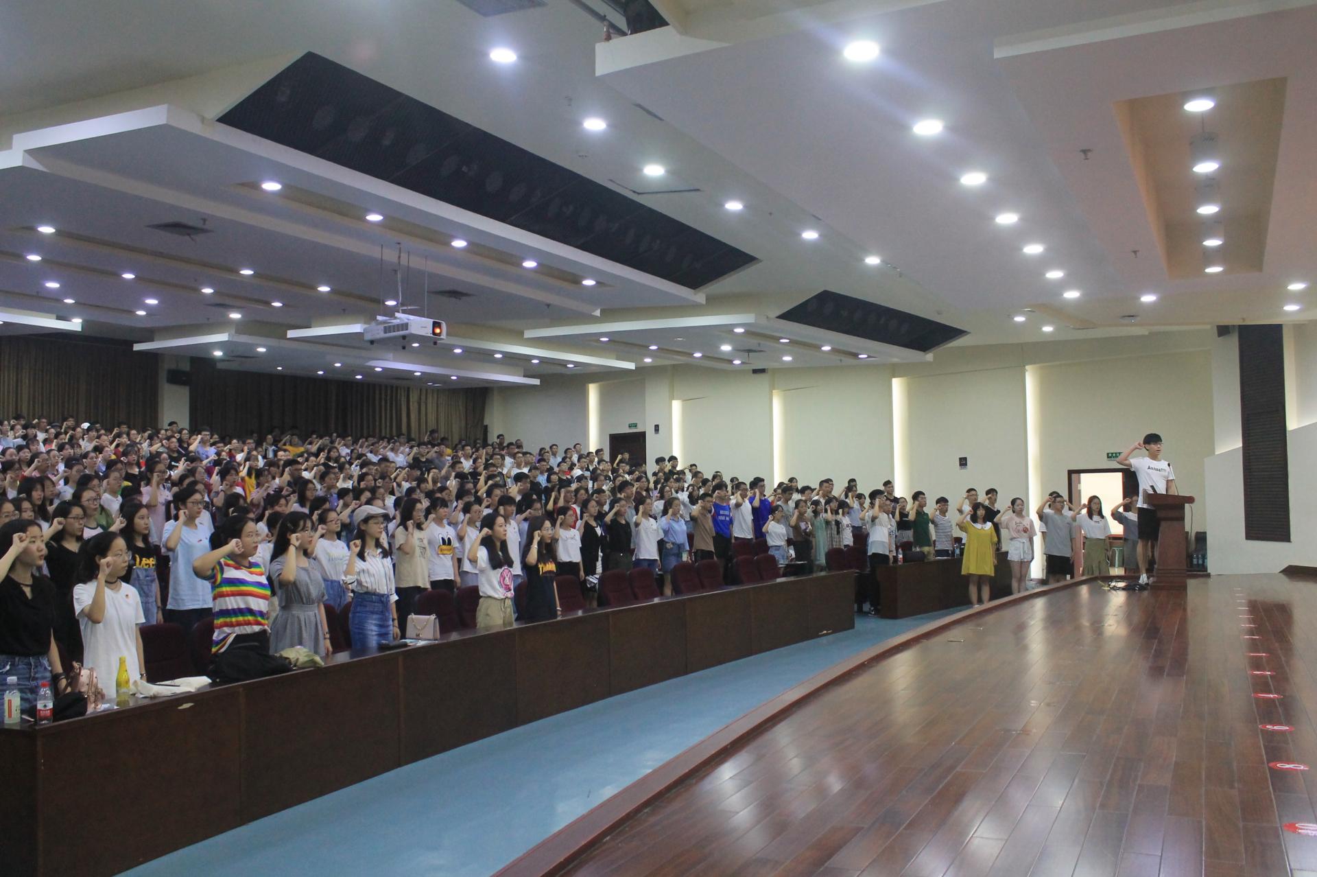 最后,在学院学生会主席叶颖徽同学的带领下,全体师生佩戴团徽,高举右手,再次庄严宣誓。重温入团仪式让学生团员们认识到了团组织的严肃性,对共青团有了更强的认同感。