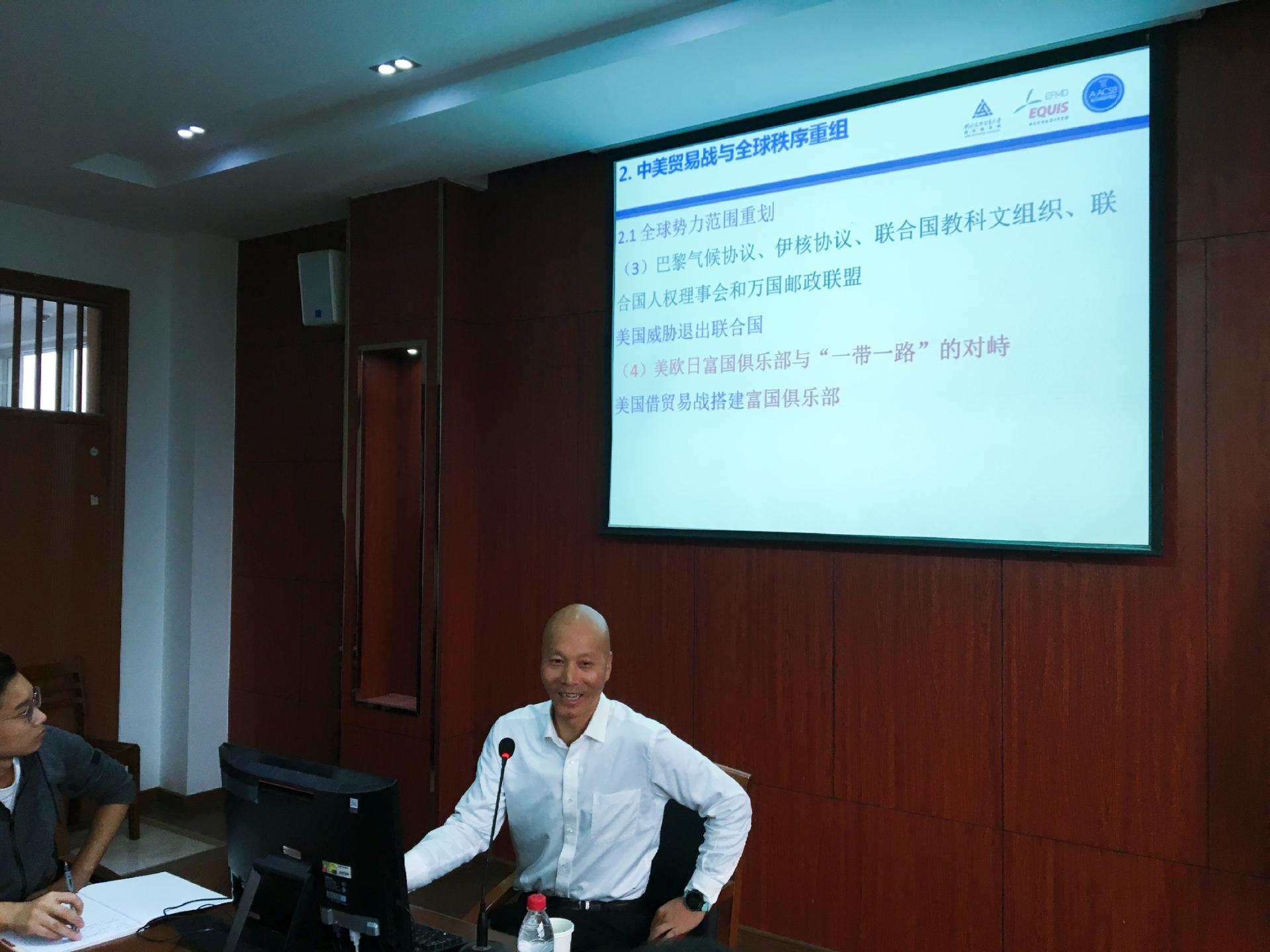 11月2日下午三点,财务高管论坛2018年第5期学术活动在学院楼301教室举行。本次论坛主题为“中美贸易战与全球价值链重构”,对外经济贸易大学国际商学院教授、博士生导师郑建明老师主讲。本次讲座由学院副院长邓川老师主持,2018级全体专硕和部分会计学硕研究生参加了本次讲座。