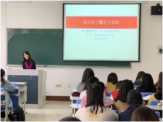 首先,余俊仙董事长分享了自己的大学生活,说服我们要从被动的学习方式转换为主动学习知识的状态,用生活化的例子告诉我们要从实践中学习到一生受用的学习方法。