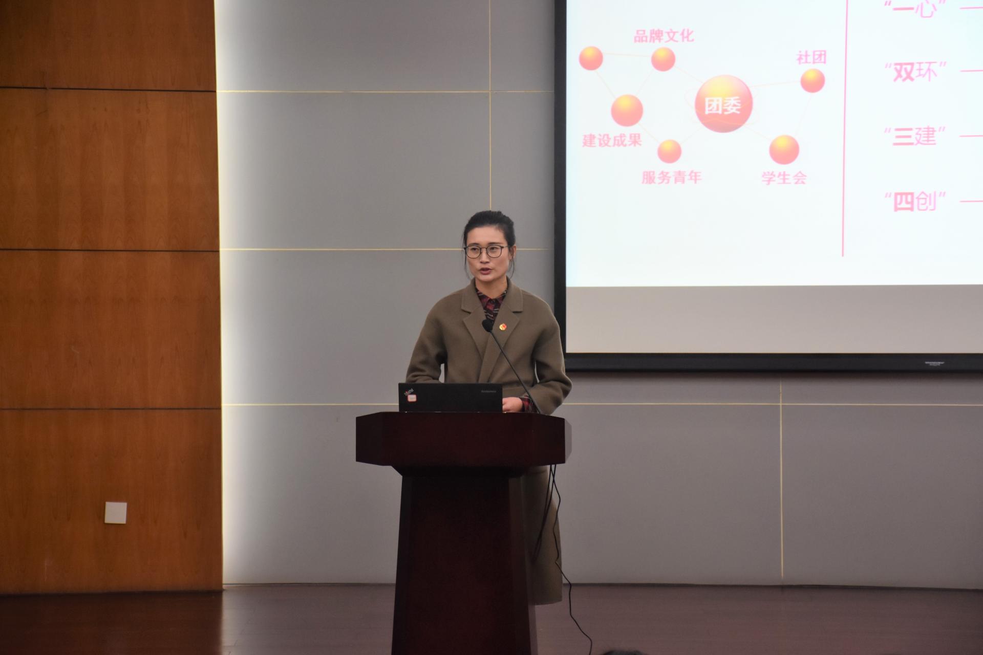 一直以来,会计学院团委紧紧围绕 “一心双环,三建四创”多维一体的团学新格局,开展相关活动,取得斐然成效。朱丽娟老师就会计学院2018度的团委工作做了详细汇报,她提到:“团十八大报告中强调,我们要不忘跟党初心,牢记青春使命,未来,希望会计团学工作可以继续像“一二三四”这响亮的口号一样,继续迈正步走正道,要始终坚持以团委为核心,以学生会和社团为双翼,以服务青年为目标,以品牌服务为依托,把团员青年更好地培养成浙财铁军和浙财力量。”