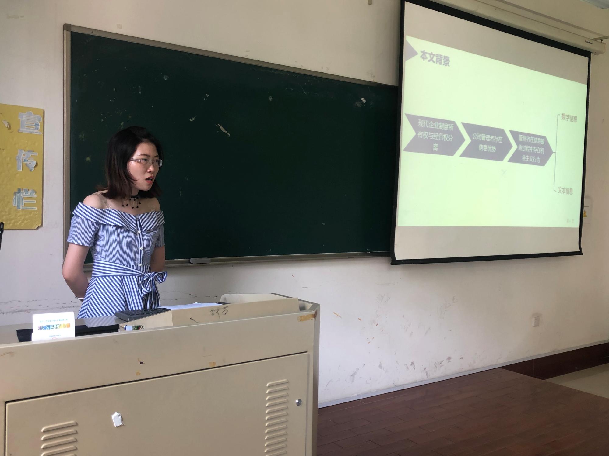 为促进研究生自主开展学术交流活动,提高研究生科研创新能力,“会计学院研究生双周学术沙龙”2018—2019学年第十二期于2019年5月23日下午在学院楼206举行。本次学术沙龙主讲人为18级会计学硕班樊雅文和葛鹏辉同学。会计学院柯东昌博士、罗红霞博士、17级和18级全体会计学硕研究生参加了本次学术沙龙。