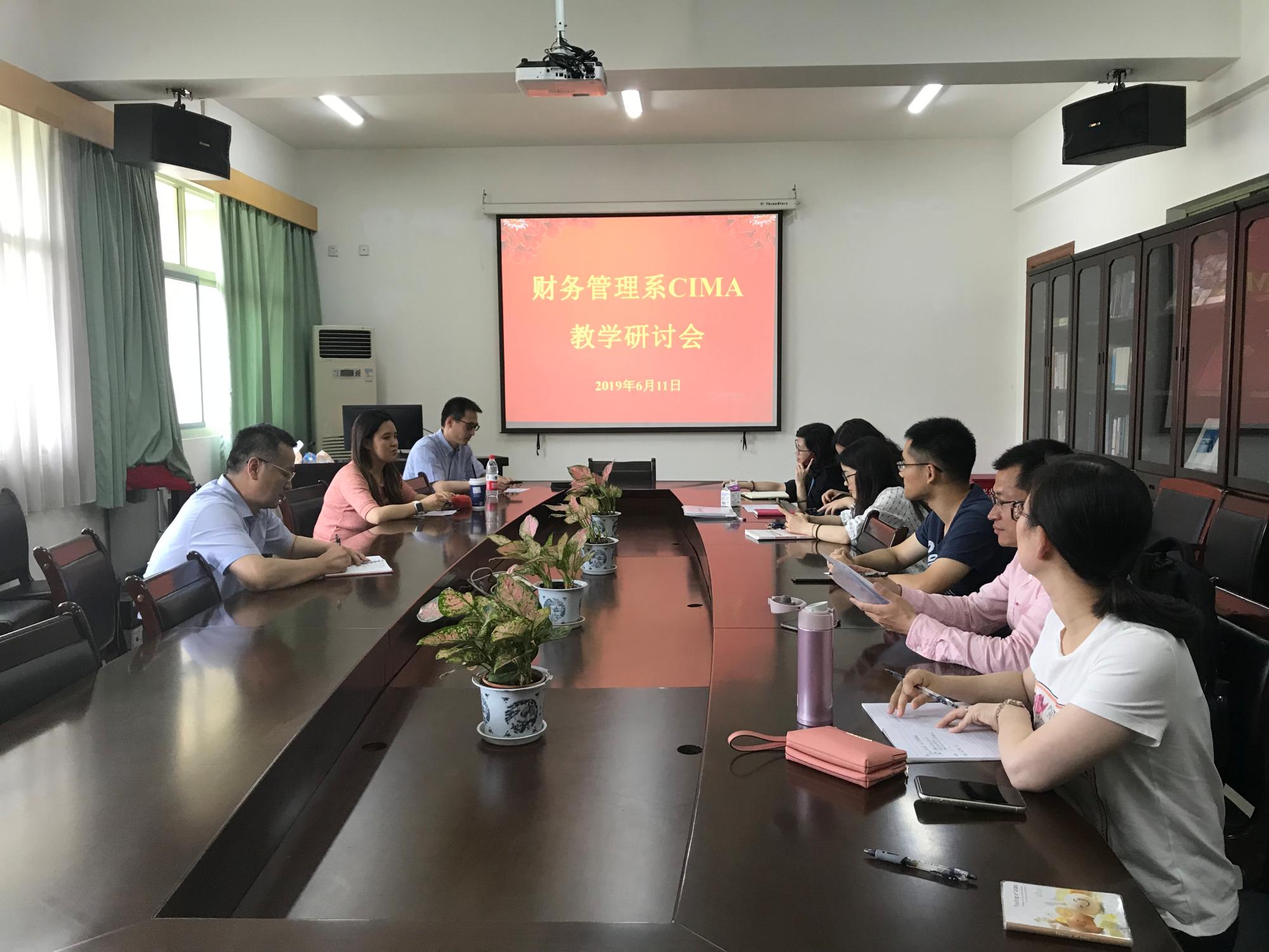 2019年6月11日下午,财务管理系在会计学院楼406会议室召开“财务管理系CIMA教学研讨会”。本次研讨会由CIMA项目负责人余景选老师主持,全体CIMA课程任课老师、国际教育中心主任葛晓蕊老师及厉国威副院长参加了本次会议。余老师首先介绍了2018级CIMA培养方案与2017级的不同,在实施大类培养后,课程安排学期和课时都做出了相应调整。接着余老师指出,这些调整和变化,也伴随着相应问题的出现,比如学生对于安排在选修课中的CIMA相关课程是否应该强制选修的问题等。针对这些问题,CIMA课程任课老师纷纷提出自己的看法,并与葛晓蕊就教学管理等问题相互讨论,统一了意见。余老师也向各任课老师通报了16CIMA班和17CIMA班相关课程考试的通过率情况,认为提高通过率是我们教学中需要关注的要点。