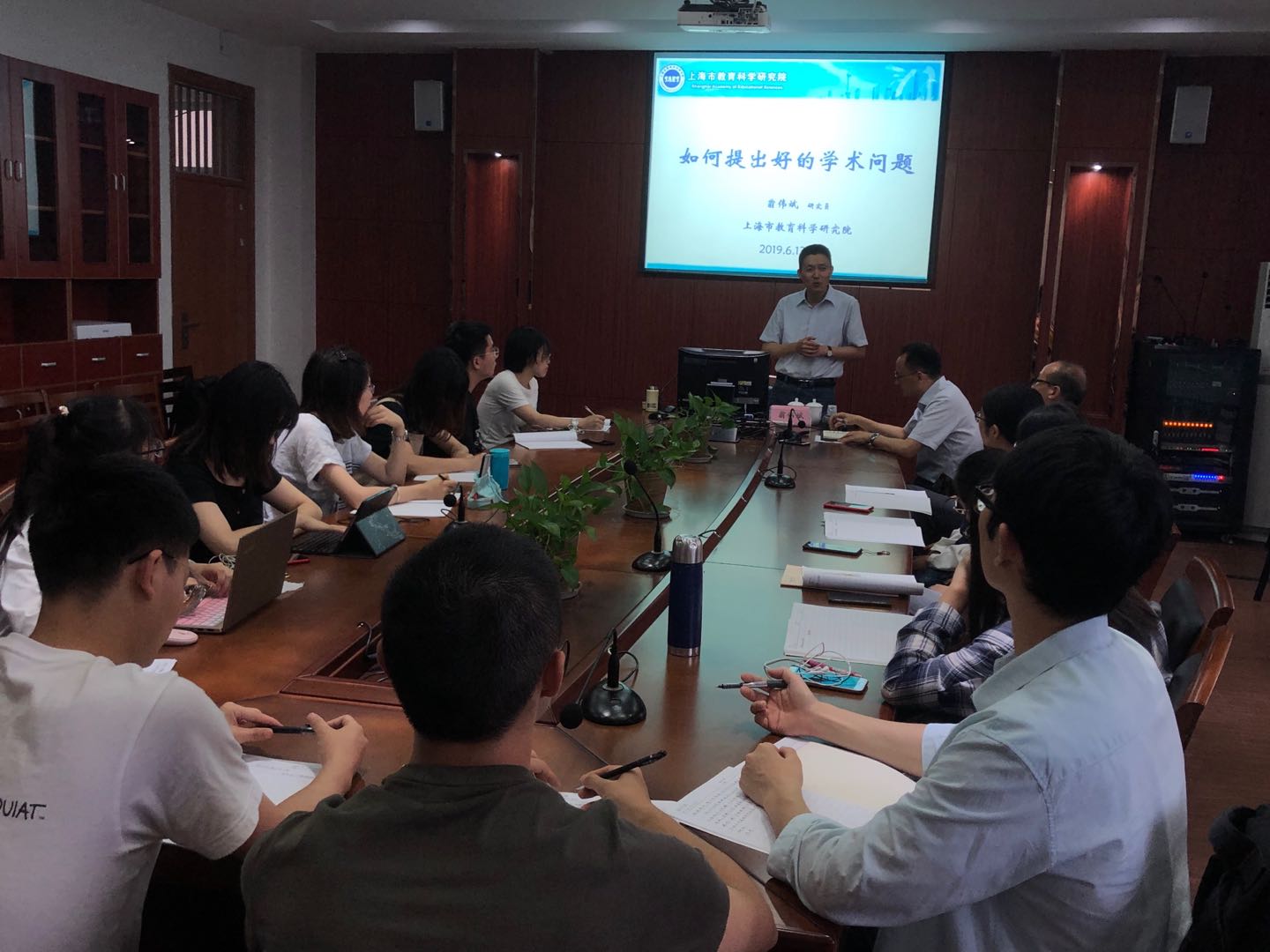 翁老师的汇报以“如何提出好的学术问题”为主题。讲座伊始,翁老师以马克思的一句话作为开场白,并介绍了科研人员成长需具备的条件和教育科研成果的评价标准。随后,进入汇报的主要内容,总共分为四点。第一点,科研究竟拼什么,翁老师认为科研拼的是脑力、体力和持久力,拼的是思想的冲动,也拼的是一个环境。第二点,怎样才能提出一个好的学术问题,翁老师告诉同学选题不能将就,坏的开始是失败的一半多,提问的根与本来源于个人的经验与理论指导,并提出了自己的建议,从边缘切入重大热点问题,选题“小清新”原则等。第三点,选题策略,翁老师倡议研究者要做到有效发问,同时为怎样构思选题提供了方法。第四点,确定研究选题的三条思路,翁老师分别从时间、空间和主体三个角度述说。
