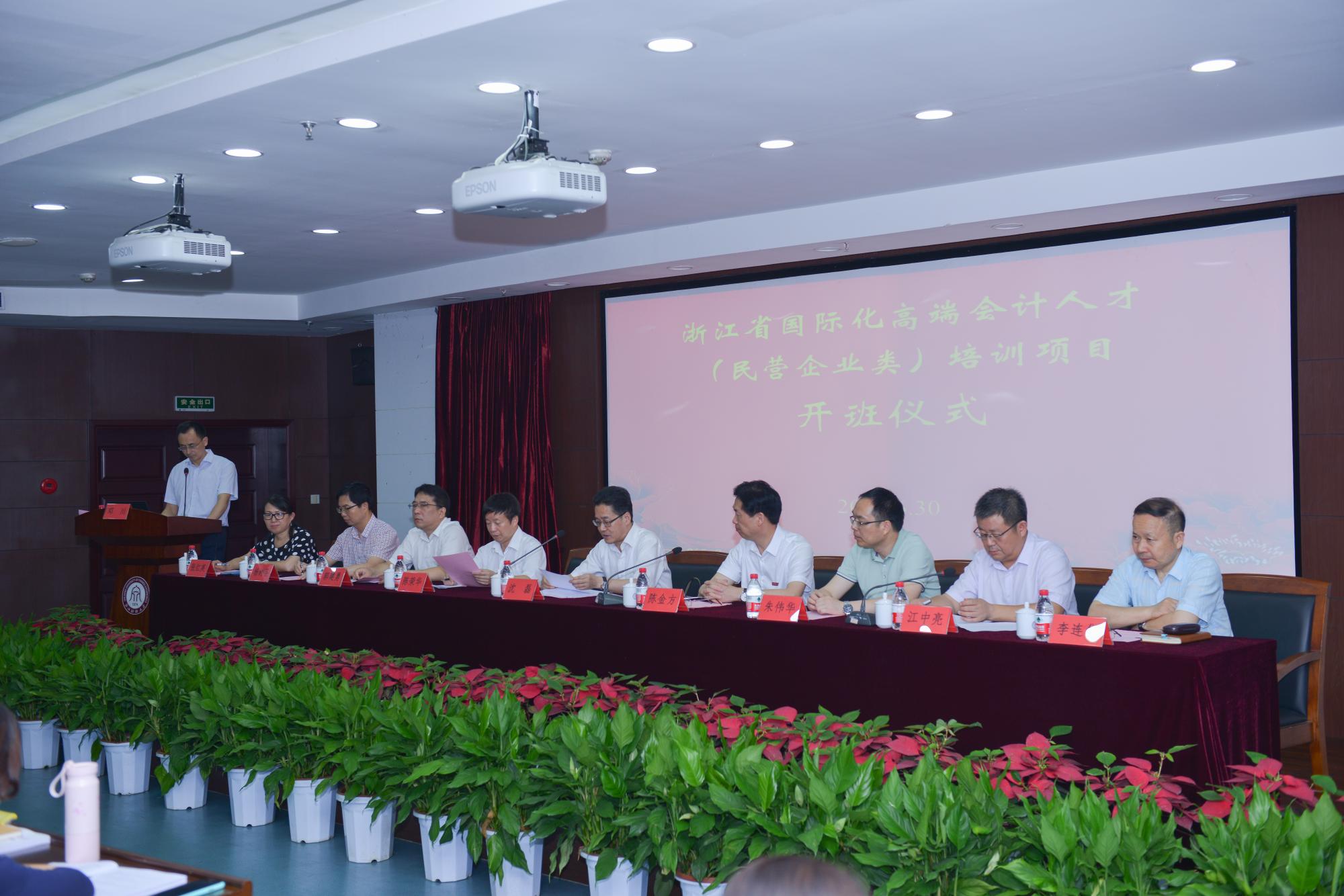 6月30日上午,由浙江省财政厅、省委人才办、省人力社保厅、省经信厅、省工商联五部门联合主办,由我院具体承办的“浙江省国际化高端会计人才(民营企业类)培训项目”开班典礼在我校隆重举行。浙江省财政厅、省委人才办、省人力社保厅、省经信厅、省工商联领导,ued体育 陈金方纪委书记,会计学院李连华院长、张红英书记,《中国会计报》、《浙江财税与会计》等媒体代表,以及来自省内民营上市公司、大中型企业的65名精英学员出席了开班典礼。开班典礼由学院邓川副院长主持。