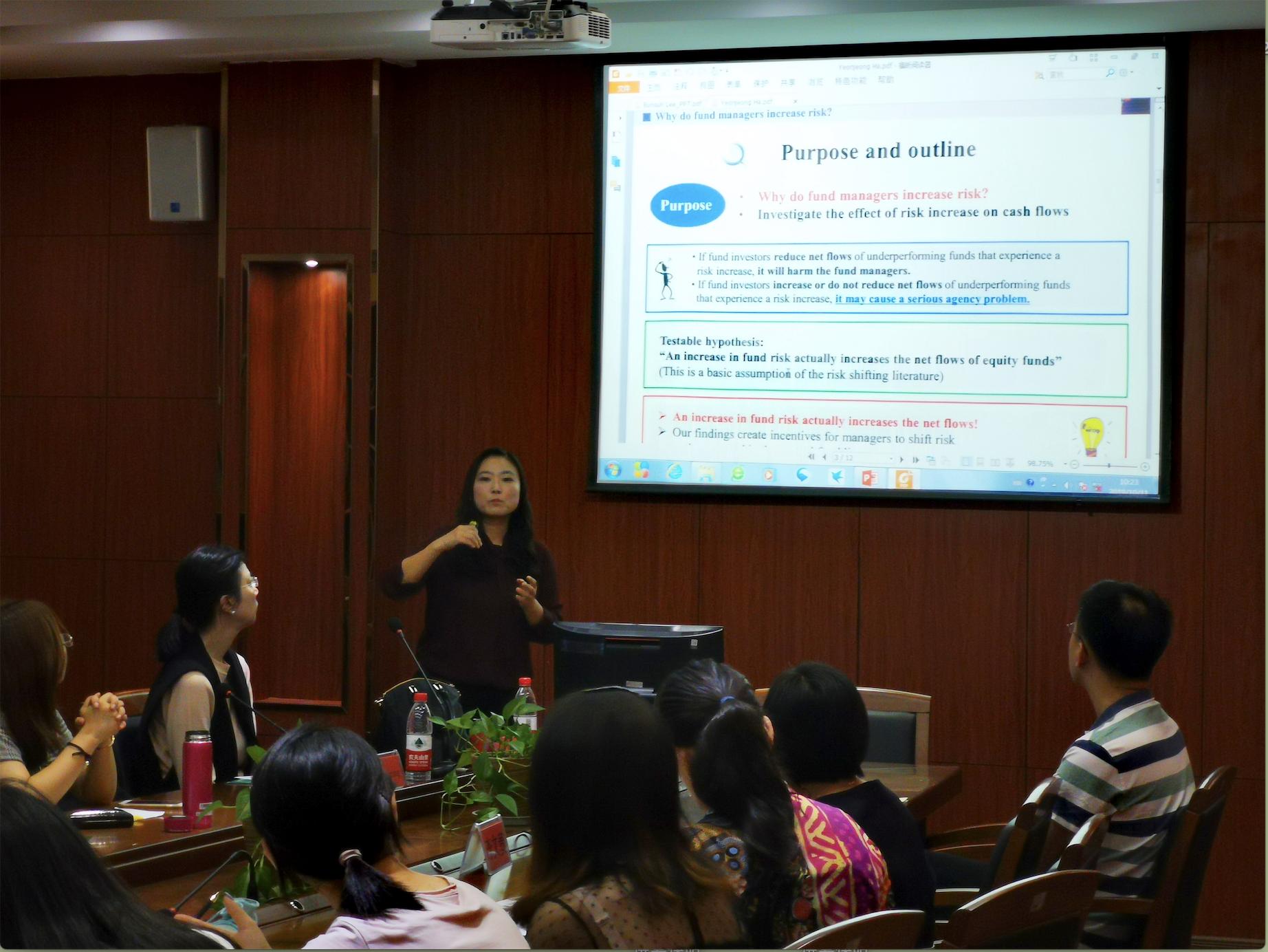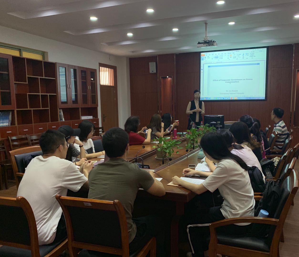 10月11日上午,浙财学术论坛2019年第7期学术活动在学院楼301教室举行。本次论坛来自韩国庆尚大学的两位博士做了两个主题报告。第一个主题是Dr.Lee Eunsuh主讲的“Effect of corporate governance on excess compensation”,第二个主题是Dr. Ha Yeonjeong主讲的“Why do fund managers increaserisk?”。会计与经济发展研究院教师、青年博士,2018级学术型研究生参加了本次活动。