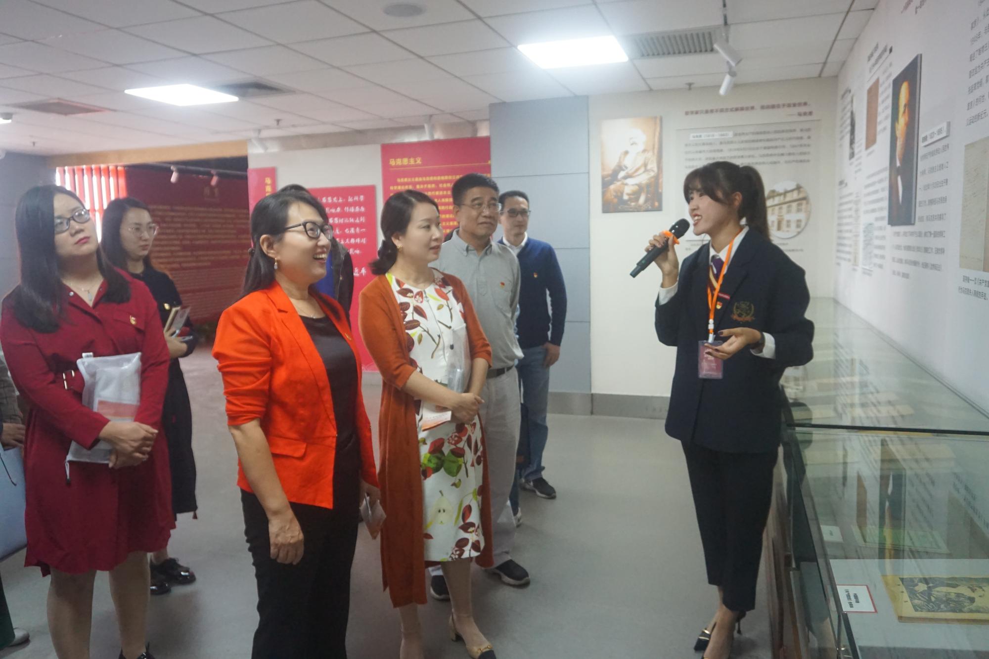 中国计量大学马克思主义院长兰婷首先向我院一行表示热烈欢迎并介绍了中国计量大学马克思主义中国化研究与传播中心的基本情况。她指出,中心主要展示马克思恩格斯列宁著作,毛泽东思想、中国特色社会主义理论体系的形成发展及成果,设有珍品储藏室、学术沙龙室、入党宣言厅等功能区,是该校马克思主义中国化研究与传播基地和基层党建活动基地。