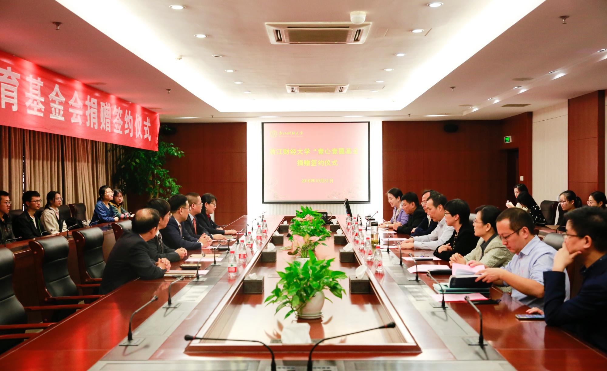 10月31日,“壹心壹翼基金”捐赠签约仪式在我校下沙校区举行。会计学专业优秀校友、北京壹心壹翼科技有限公司董事长兼CEO戚洪标先生向学校捐资成立“壹心壹翼基金”。校党委书记、校友总会会长李金昌,党委副书记、校友总会副会长兼秘书长黄建新,北京壹心壹翼科技有限公司副总裁张添荣,北京壹心壹翼科技有限公司财务总监张瑞及学校相关职能部门、学院负责人等出席签约仪式。