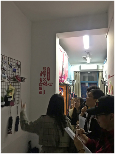 活动开展后,研究生们积极响应、踊跃参与。11月15日晚,由研会、研究生党支部党员与班委组成的代表小组对各参赛寝室进行了走访打分。各寝室成员主动热情的向代表小组介绍自己寝室的设计主题、装扮思路以及装饰亮点。各寝室都展示出了独特的寝室文化以及寝室成员爱国爱党的思想热情,同学们也充分展现出自己的创意、活力与积极向上的生活态度。
