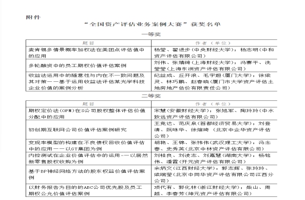 我院资产评估系郭化林教授、项代有老师联合坤元资产评估公司参与了这次案例大赛,取得了可喜的成果。全国各高校和资产评估公司提交了79个参赛案例,评选出一等奖3名、二等奖6名、三等奖10名、优秀奖20名。由项代有和郭化林老师指导的两个案例在经过两轮评审后,均获得了专家认可。案例“以财务报告为目的的ABC公司优先股及员工期权公允价值评估案例”获得了二等奖,案例“商誉减值测试评估中市场法运用案例”获得了优秀奖。这是资产评估系一直贯彻“校企联盟,应用创新人才培养”模式的教学改革理念所取得的阶段成果。