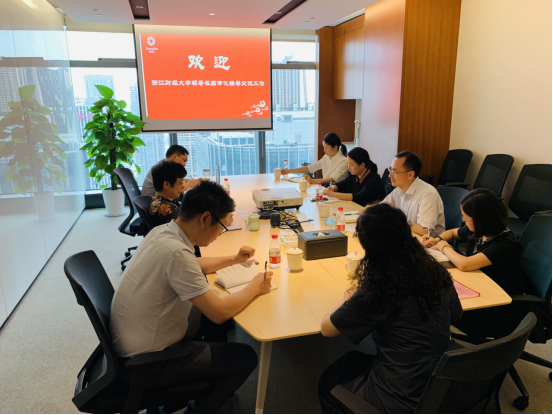 6月24日,学院院长邓川、党委书记张虹等一行6人赴传化集团进行调研,集团总裁助理、财务管理部总经理郭军,财务管理部副总经理郑志军等人参加了本次调研座谈会。