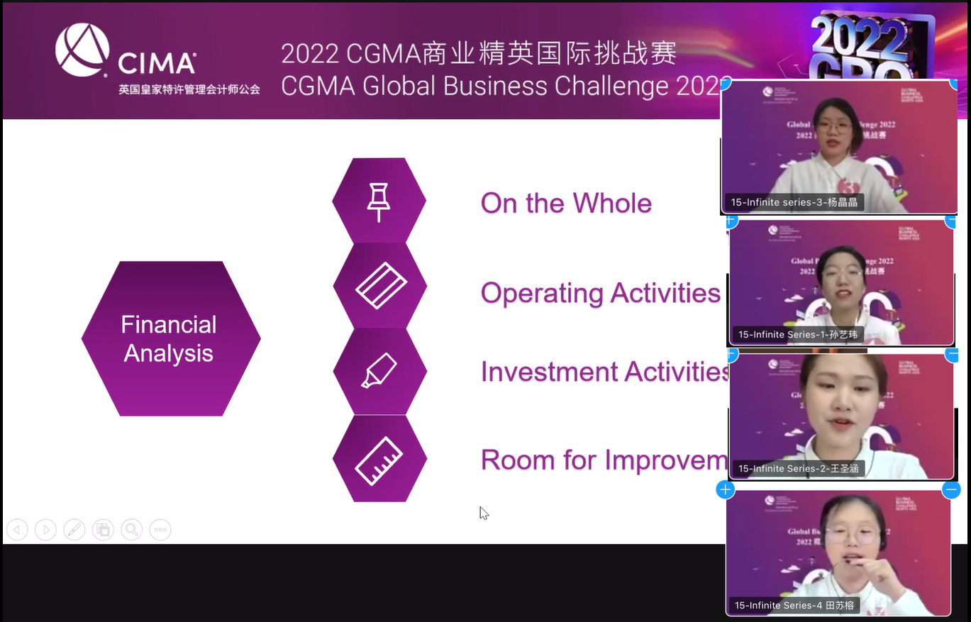 由国际注册专业会计师公会(AICPA|CIMA)主办的“2022 CGMA商业精英国际挑战赛”(Global Business Challenge North Asia,简称2022 GBC挑战赛)华东及西北赛区决赛于5月21日成功举办。我院学生荣获华东及西北赛区决赛亚军。
