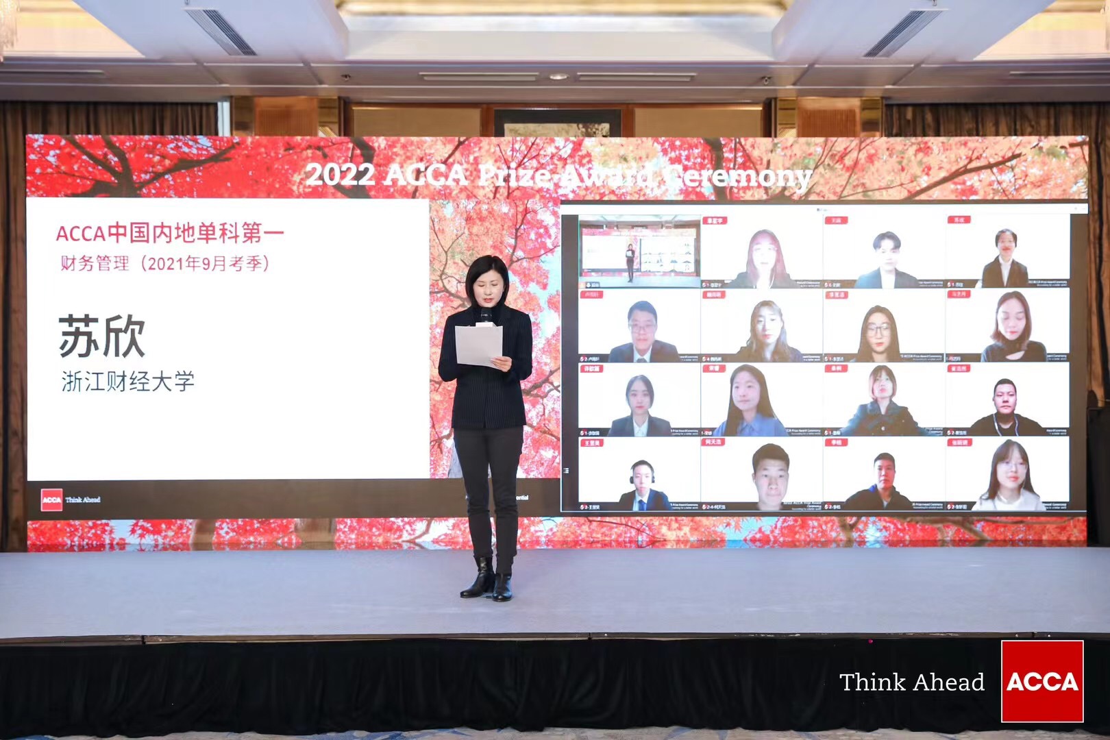 11月6日上午,2022年度ACCA中国内地单科第一颁奖典礼在线上举行。我院19ACCA2班苏欣同学在2021年9月考季中获得《Financial Management(FM财务管理)》中国内地单科第一的优异成绩,ACCA华北区总监邵楠女士为其颁奖。