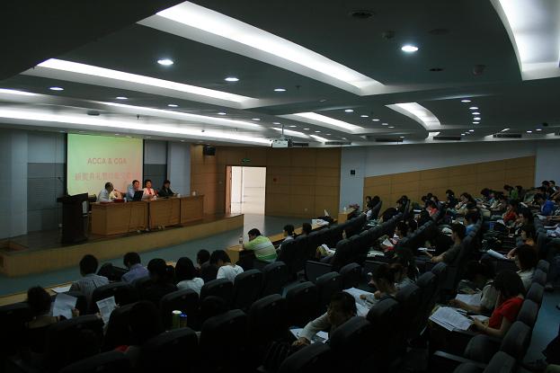 经验交流阶段,王筱民老师邀请了蔡海静老师以及04级ACCA班和CGA班的六位同学,分别就专业学习、就业、出国、考研等方面和大家分享了他们的经验和体会,对大家今后的学习、考研、就业定位有所助益。