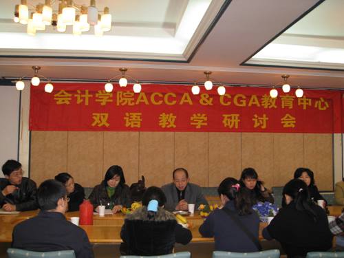 2008年12月19日下午,会计学院ACCA&CGA教育中心在文华校区第一会议室召开了ACCA&CGA双语教学研讨会。会议由会计学院副院长邱学文主持,ACCA&CGA任课教师及国际会计系教师参加了此次会议。