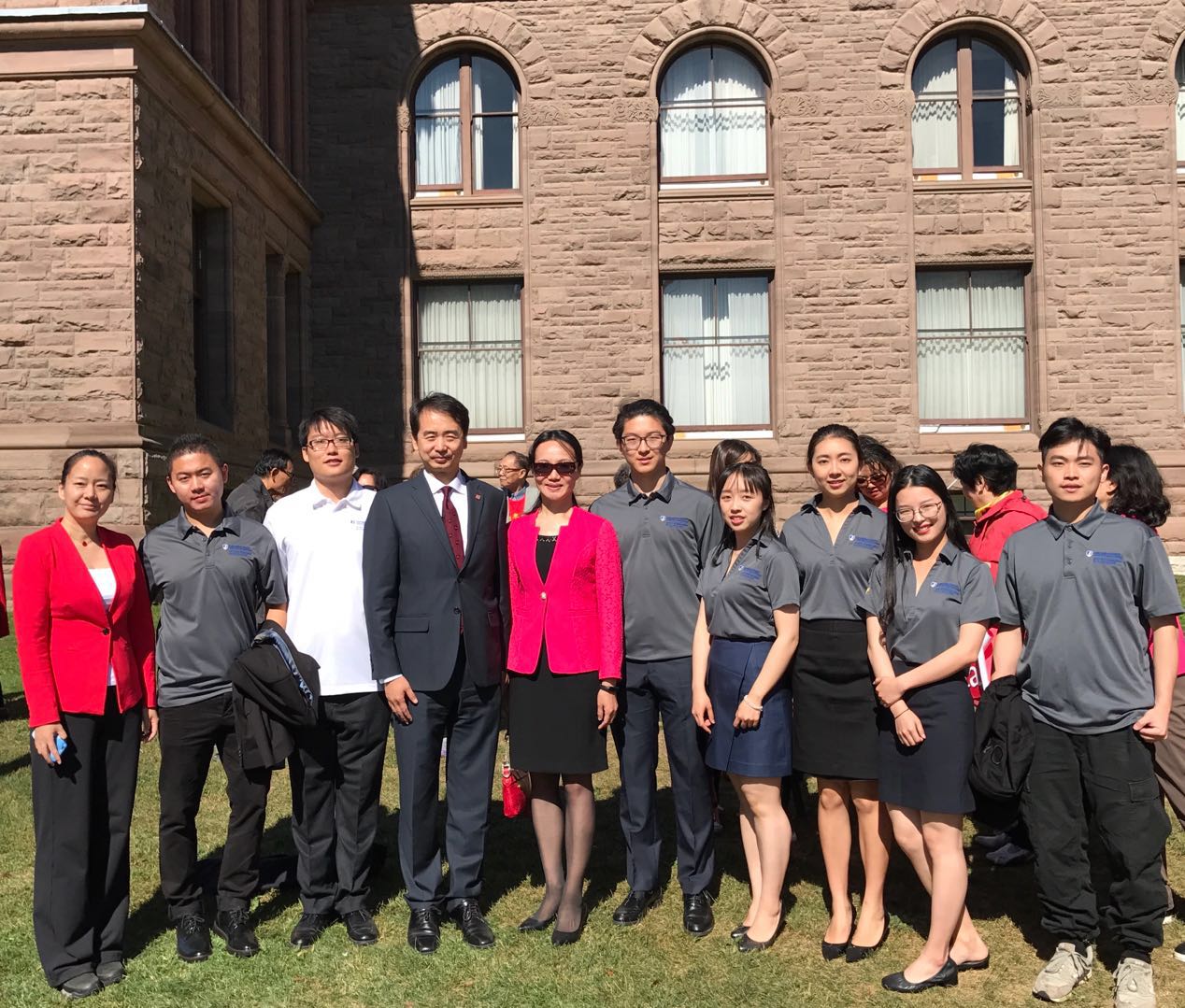 我院中加班学生柳畅、汪炎言、骆明明、周奕童和黄一钒,作为留学生代表受邀参加升旗仪式。