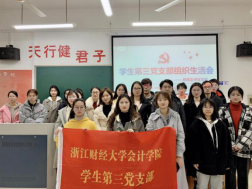 本次第三党支部组织生活会暨民主评议党员会圆满落幕,会计学院第三党支部的同学们一同合影留念。