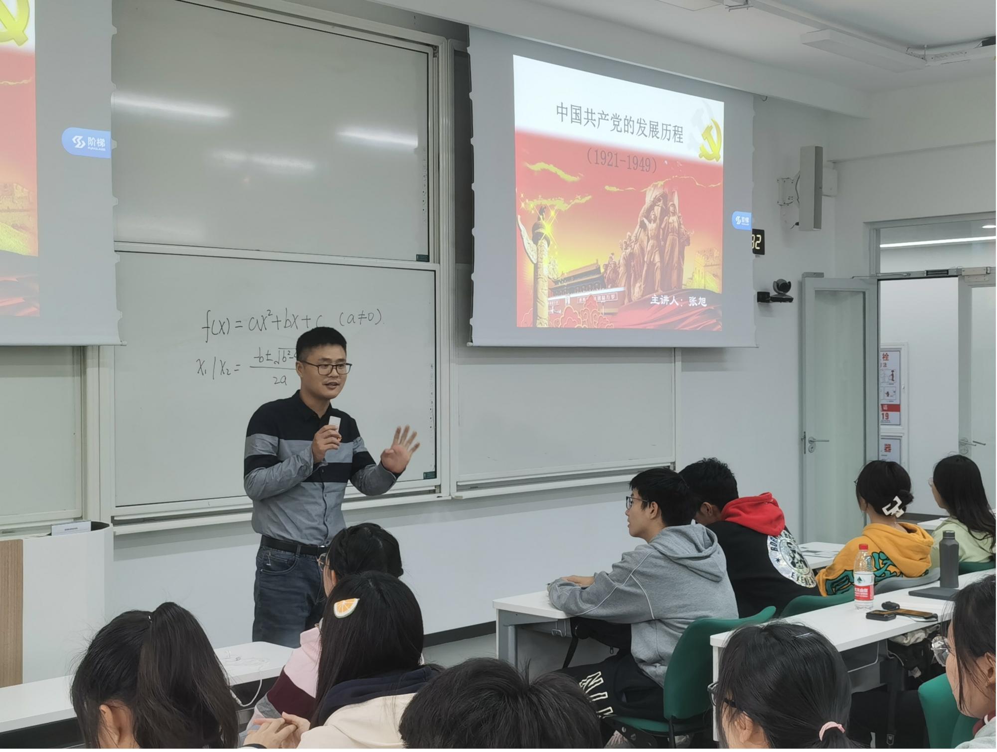 第三讲由人文与传播学院张旭老师主讲“中国共产党的发展历程(1921-1949)”。张老师讲述了从中国共产党自1921年成立以来,从中共一大到七大的发展历程。从建党背景为切入点,讲述了五四运动和中共一大的历史,进一步体现了中国共产党建党的不易与伟大成就。帮助入党申请人进一步了解党的历史,坚定入党信念,确立理想目标,为成为一名共产党员而继续奋斗。