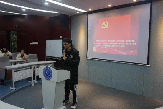 会议伊始,陈炜副书记宣读了新发展党员名单。随后,在张虹书记的带领下,全体新发展党员面向鲜艳的党旗,举起右拳,庄严宣誓,铮铮誓言,铿锵有力。宣誓完毕,新发展党员代表陈超同学发言,他回顾自己了的入党经历,并代表全体新党员向党组织表明决心:牢记共产党人的初心与使命,更加严格的要求自己,充分发挥党员的先锋模范作用。