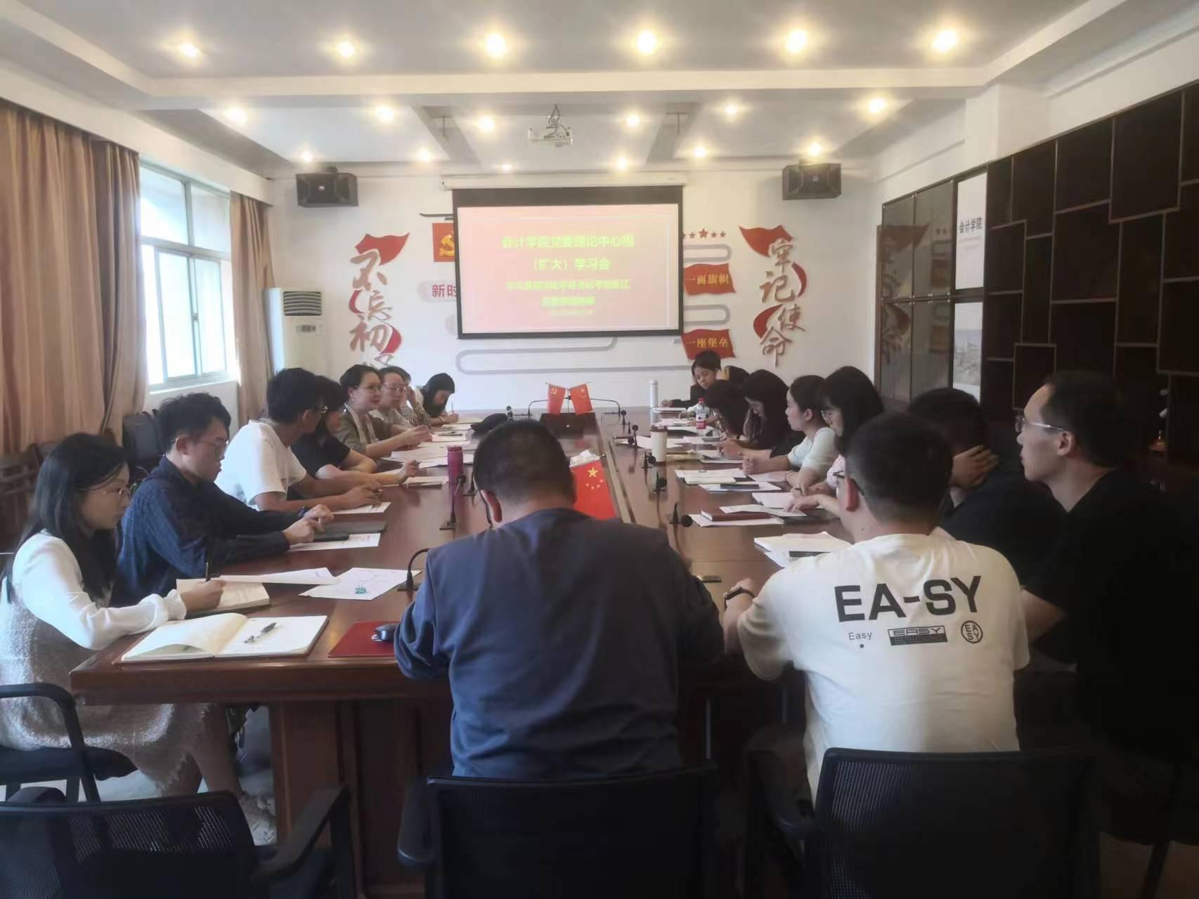 2023年10月27日,会计学院在学院楼408会议室召开党委理论学习中心组学习(扩大)会议,专题学习习近平总书记考察浙江重要讲话精神。党委理论学习中心组成员参加学习会,各党支部书记列席会议。学院党委书记张虹主持会议。