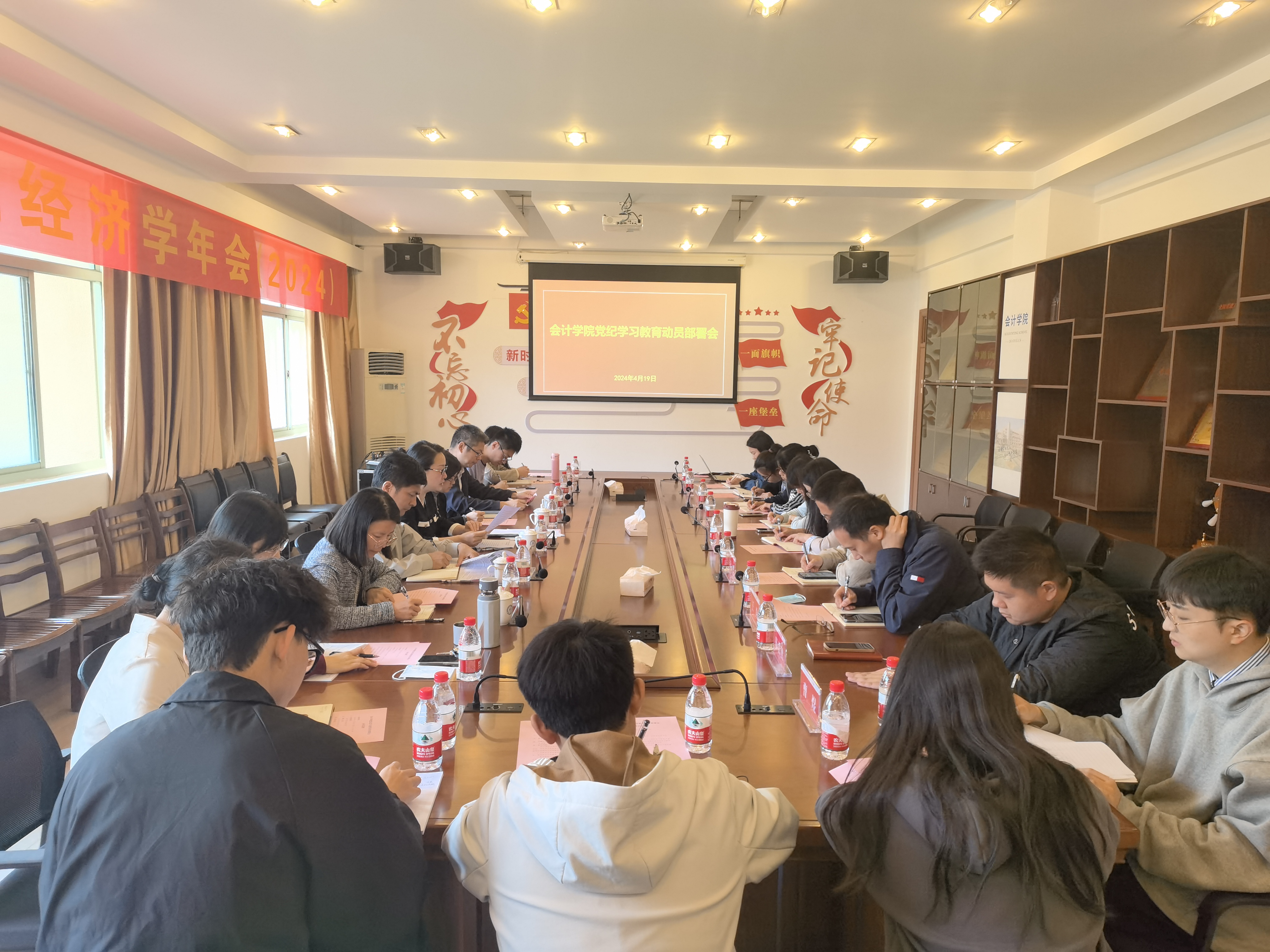 4月19日上午,会计学院党委在学院楼408会议室召开党委(扩大)会,就党纪学习教育进行动员部署。学院领导班子成员、党委委员、纪委委员、全体党支部书记参加会议。会议由学院党委书记张虹主持。