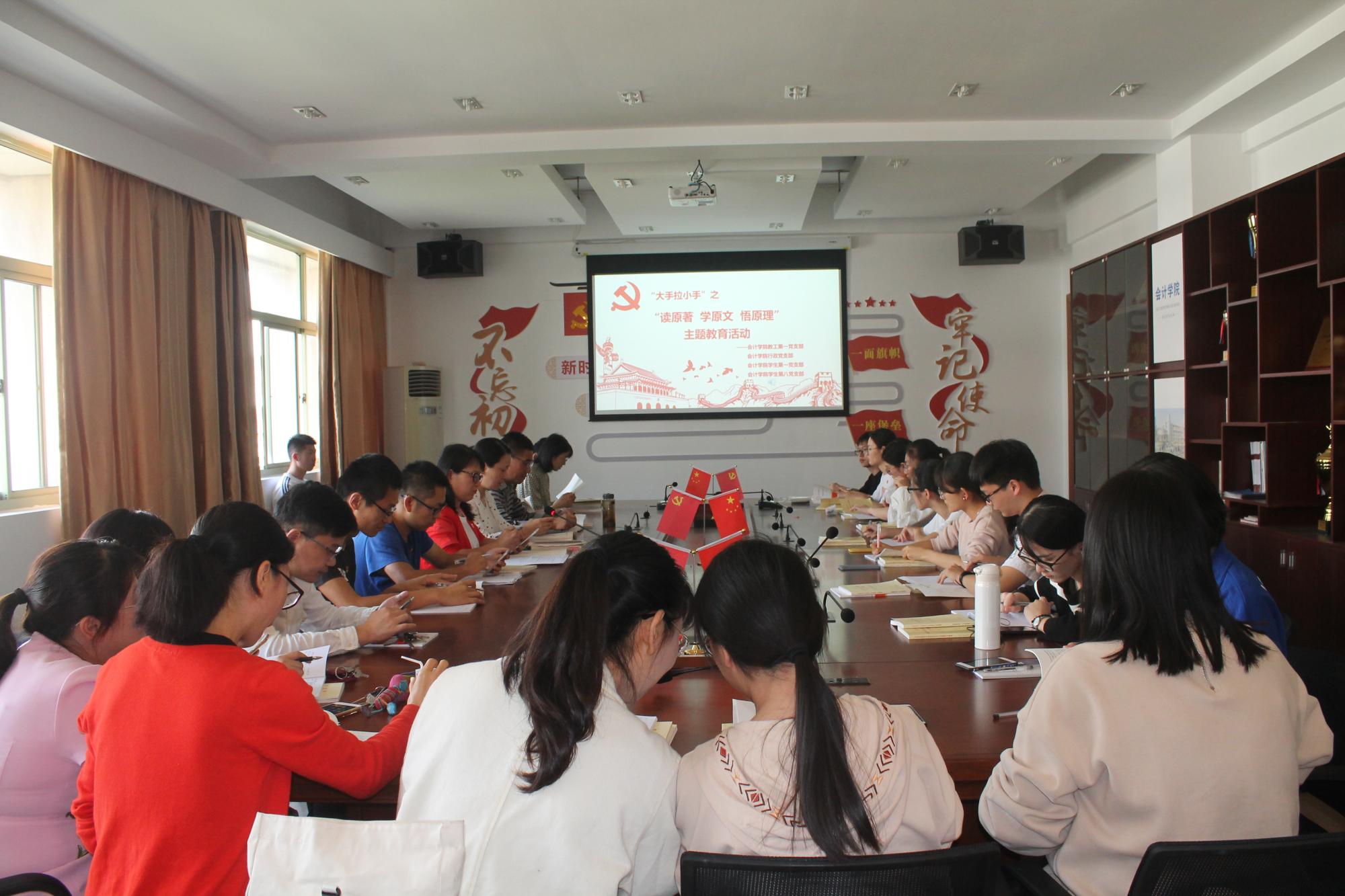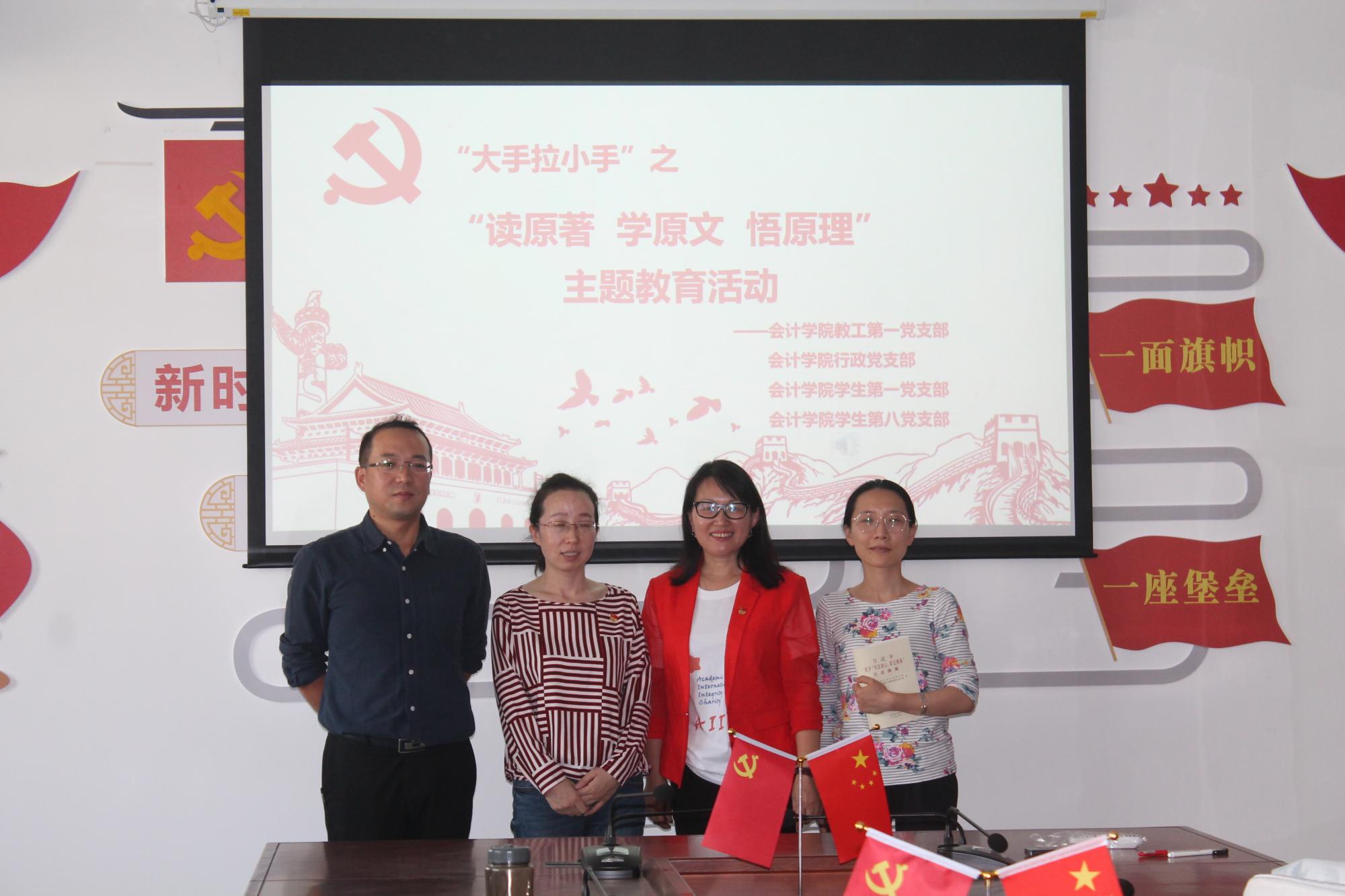 10月10日,会计学院教工第一党支部、学生第一党支部、学生第八党支部在学院楼408举行了大手拉小手“读原著、学原文、悟原理”的主题教育活动。“立身以立学为先,立学以读书为本。”通过读原著、学原文、悟原理的活动,旨在帮助党员同志们筑牢理想信念之基,把稳思想之舵,补足精神之钙,同时进一步树牢“四个意识”、坚定“四个自信”、坚决做到“两个维护”,理清、明确今后工作目标和思路。