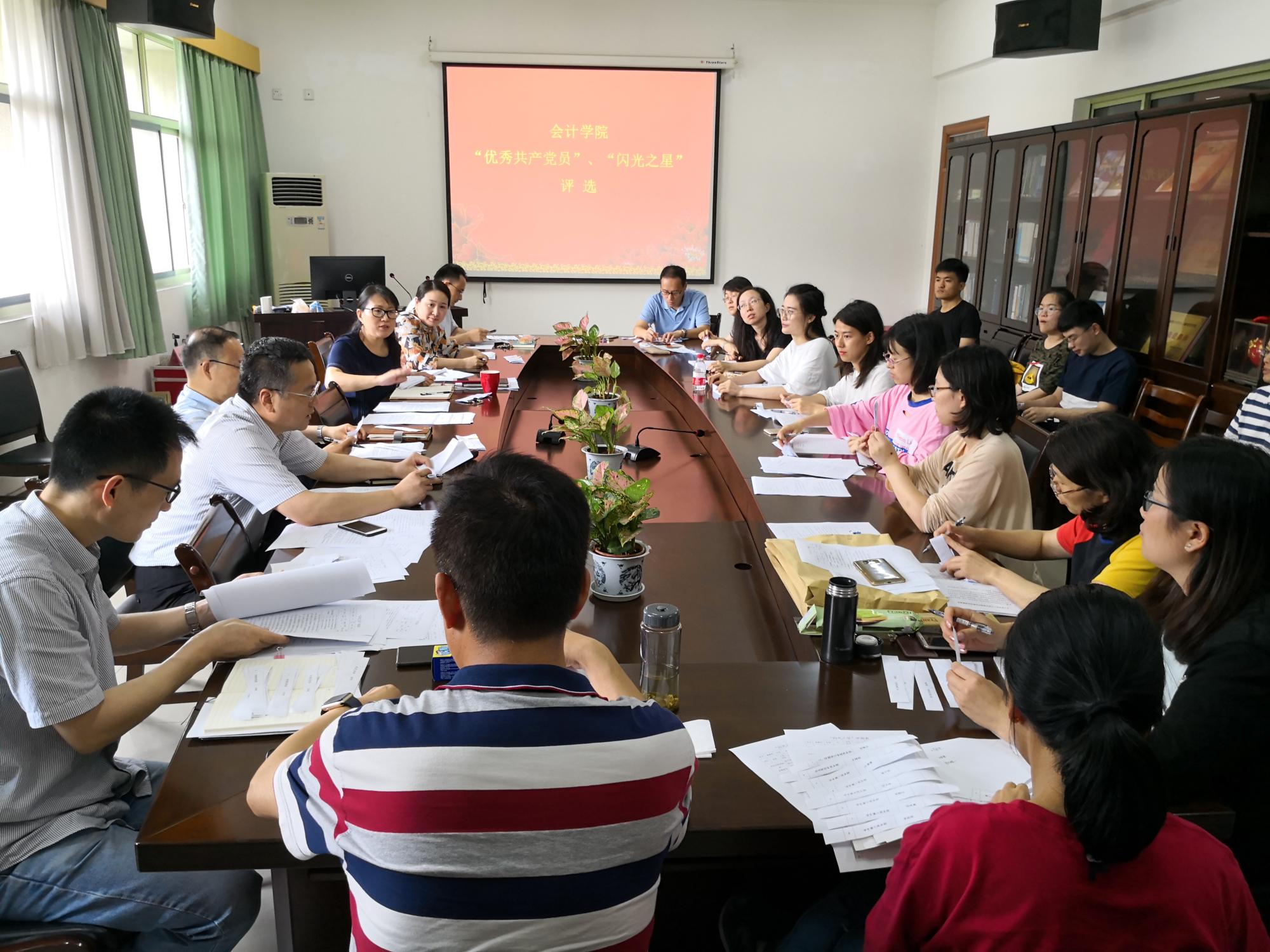 为进一步弘扬先进事迹,以评促建、树立典型,6月27日,会计学院在学院楼406会议室开展“优秀共产党员”、“闪光之星”评选活动。学院班子全体成员和党委委员出席活动并担任评委。全体党支部书记参加此次活动并担任评委。