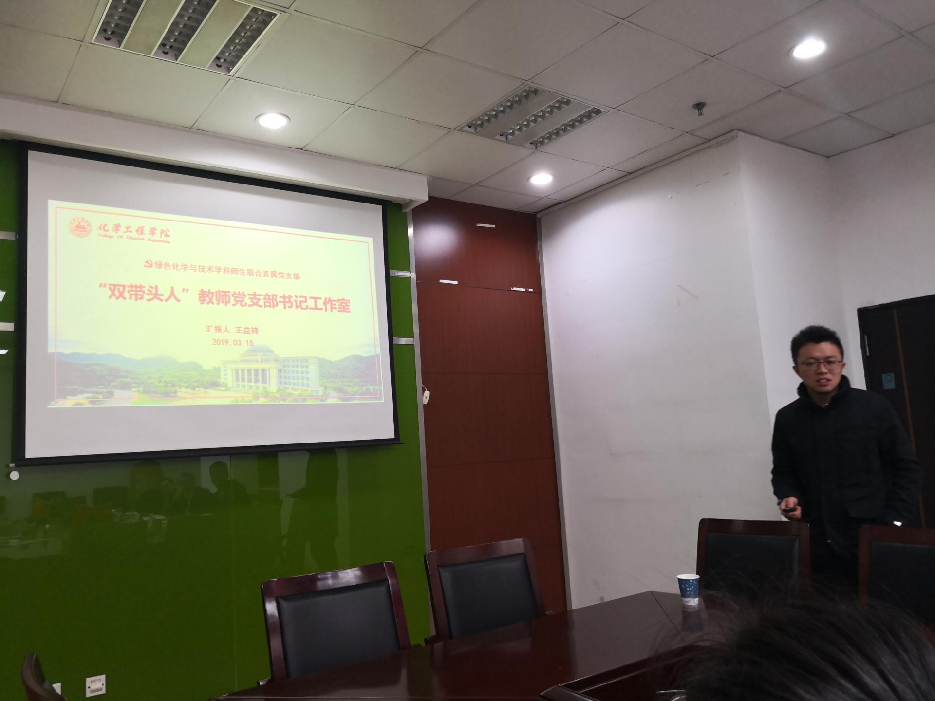 浙江工业大学化学工程学院绿色化学与技术师生联合党支部书记王益锋就“双带头人”教师党支部书记工作室建设情况进行了介绍。