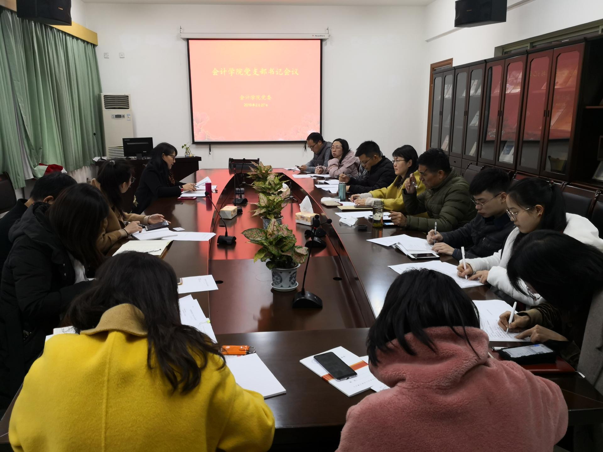 2019年2月27日中午,我院党委在学院楼406会议室召开党支部书记会议,安排和部署新学期学院党建工作,全体党支部书记参加了会议。我院党委书记张红英主持会议。