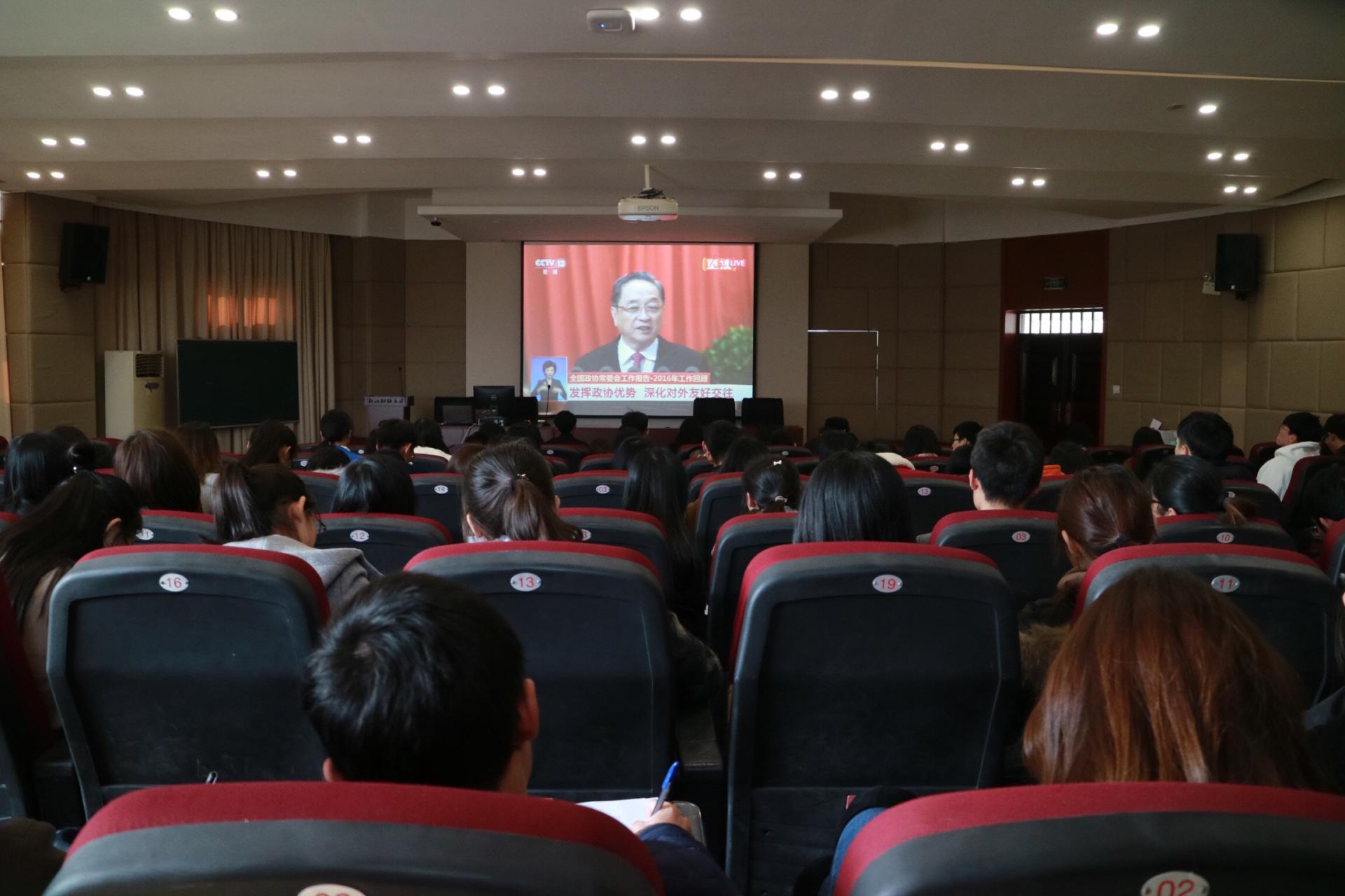 3月3日下午,在两会召开之际,会计学院积极组织师生观看学习政协会议直播并展开热议。本次学习面向会计学院全体,部分老师学生干部在学院楼211观看直播,其余学生以公寓为单位在宿舍楼活动中心集中观看。