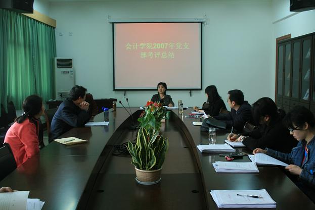 2008年4月3日,会计学院党总支在学院楼406召开了2007年度党支部工作考评会。会议由会计学院党总支书记邵毅平主持,党总支副书记张红英、总支委员和教工、学生党支部的书记参加了会议。