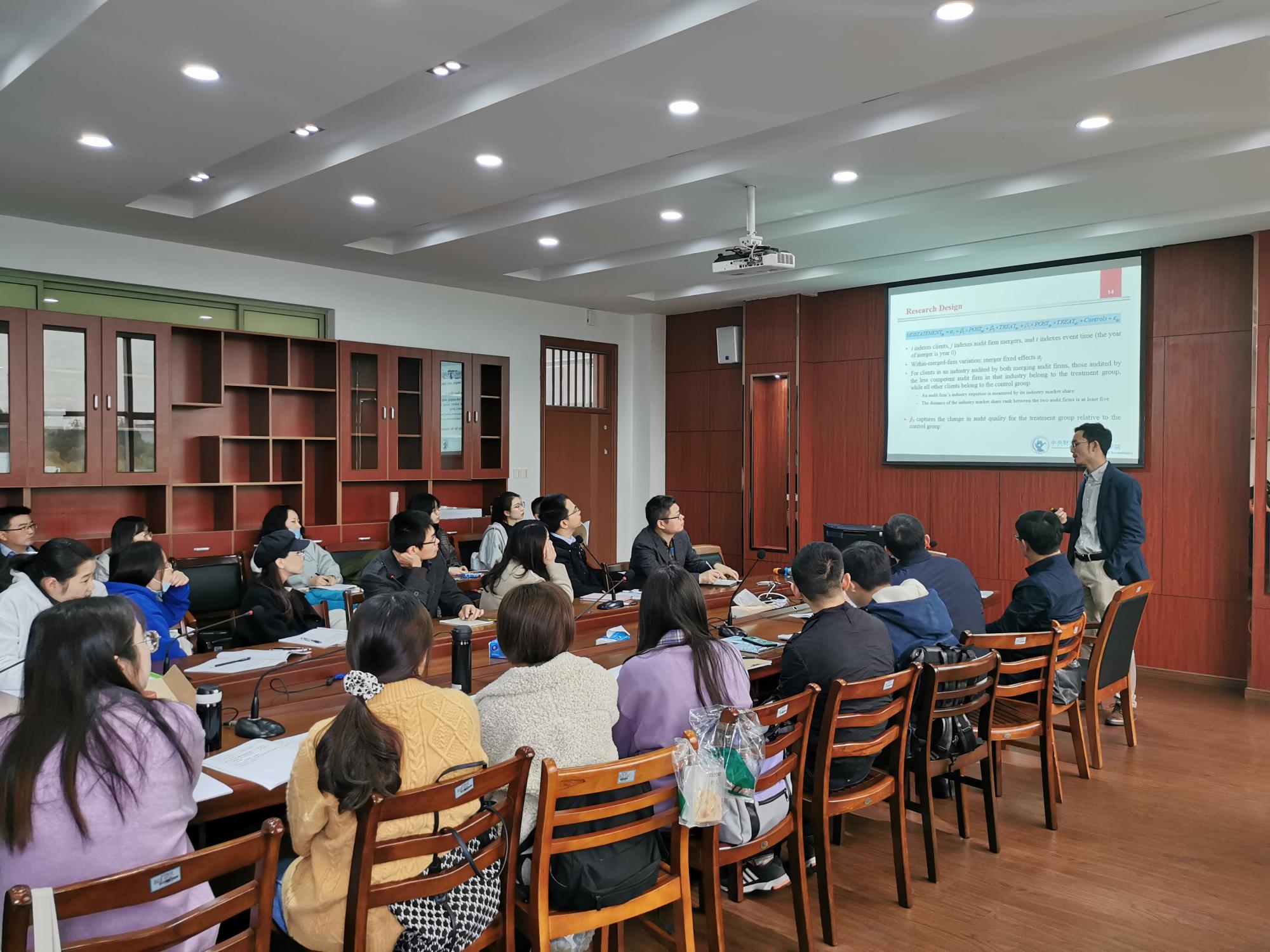 11月26日上午,“浙财会计学术论坛”2020年第2期在会计学院楼301会议室拉开序幕。本期论坛主题为“Industry-Specific Knowledge Transfer in Audit Firms: Evidence from Audit Firm Mergers in China(审计事务所的特定行业知识转移:来自中国审计事务所合并的证据)”,由现任中央财经大学会计学院副教授肖土盛主讲。本次论坛由会计学院宋夏云老师主持,会计学院2020级全体会计学硕及部分教师参与了此次论坛。
