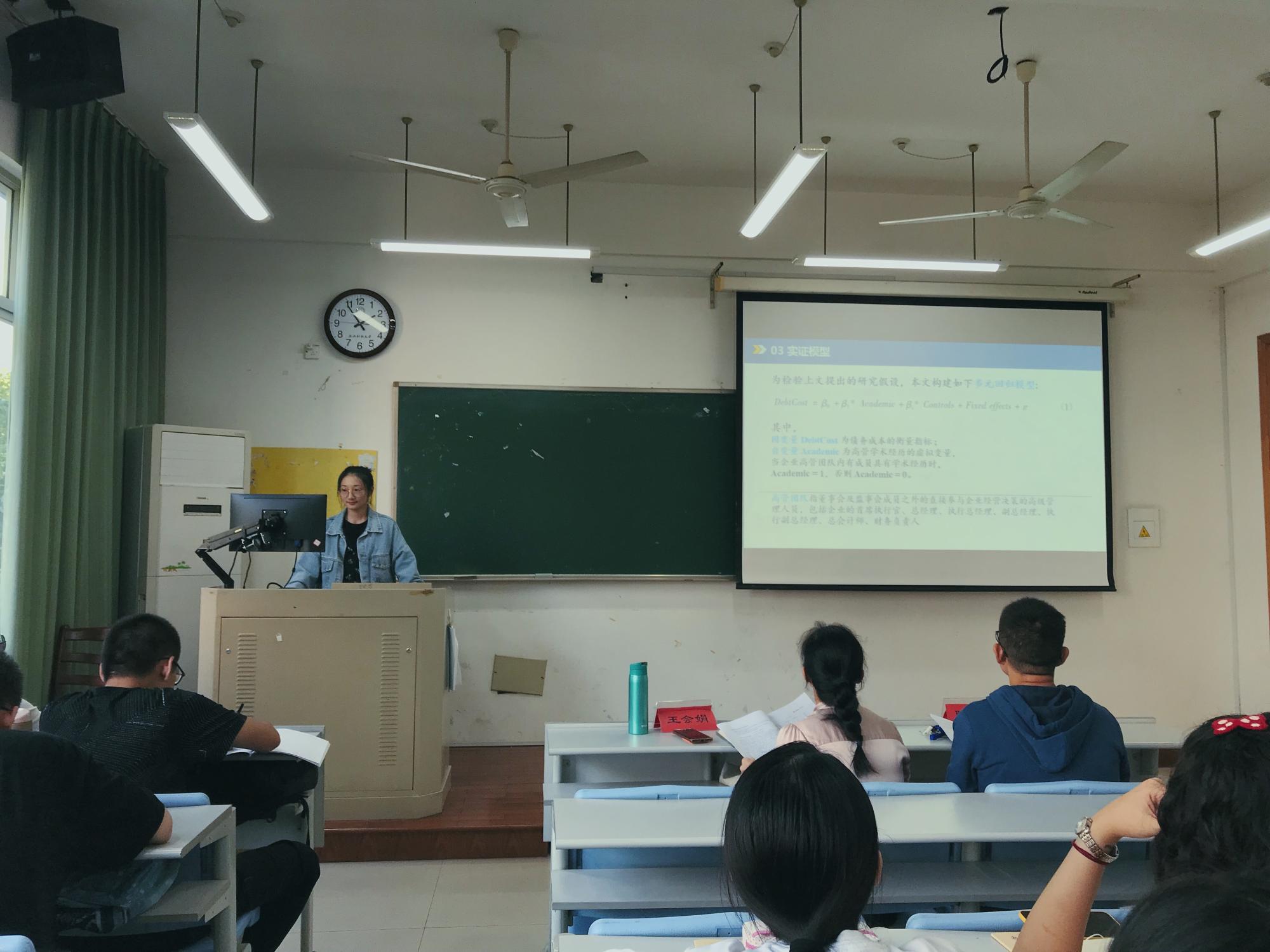 其次,沈睿诚同学汇报的文章题目为《实际控制人性别的公司治理效应研究》。文章基于女性高管数量显著增加这一现实背景,结合我国上市公司股权结构较为集中的现象对女性实际控制人在公司治理中的作用进行了思考。以2002-2015年中国上市民营企业为样本,实证检验了实际控制人性别对利益侵占行为这一公司治理行为的影响,结果表明,相比男性实际控制人,女性实际控制人更少地侵占中小股东利益。且这一结论在一系列稳健性检验后仍然成立。进一步的研究发现,除了女性实际控制人外,其他女性董事和女性CEO并不能影响实际控制人的利益侵占行为。异质性的检验发现,在内外部治理较弱的公司中,实际控制人性别对利益侵占的影响更加明显。文章的研究从实际控制人的性别这一新的视角推动了高管性别如何影响公司治理的研究,丰富了相关文献。并对政府职能部门制定相关政策提供了有益的政策启发。