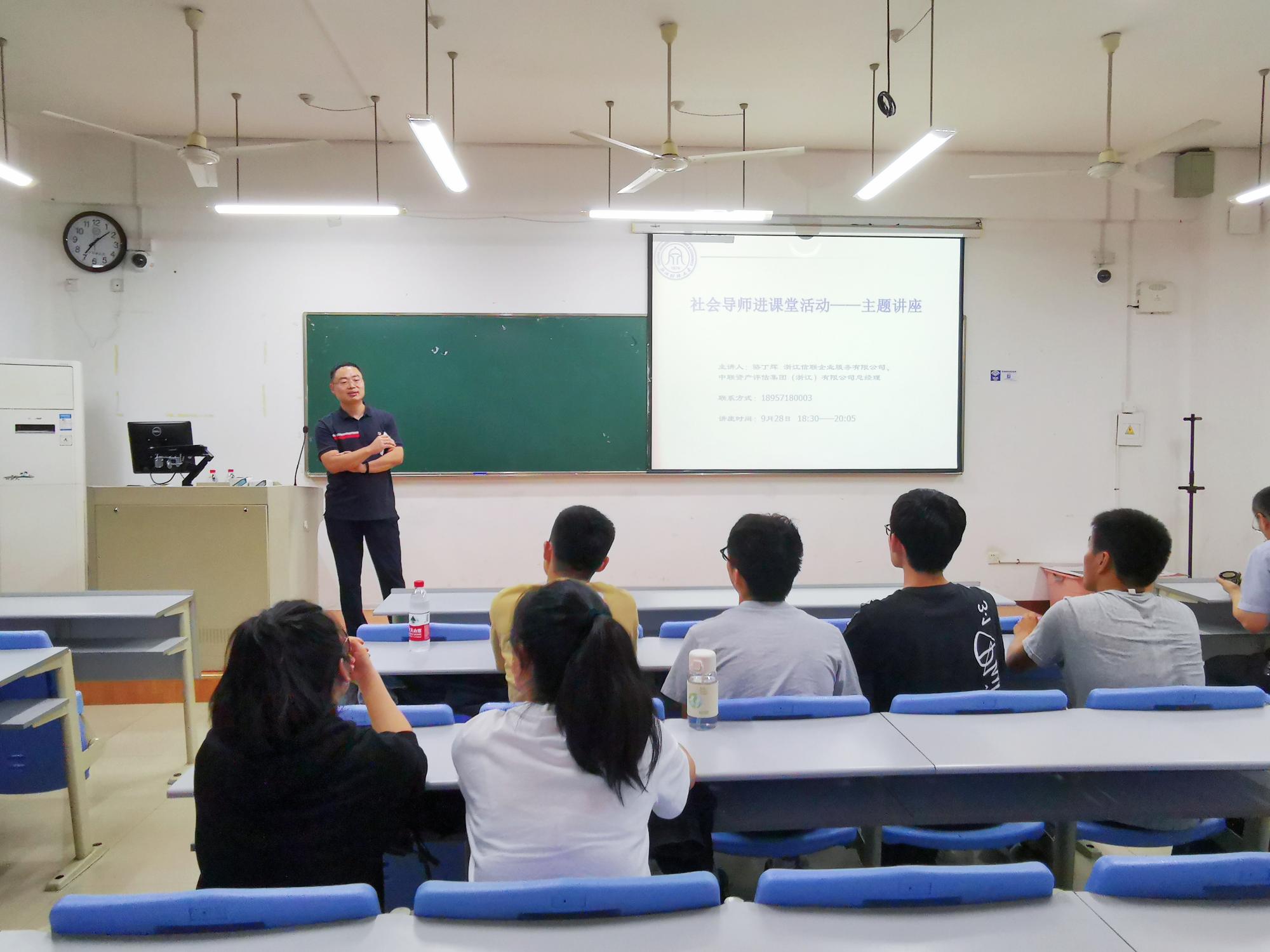 9月28日晚,社会导师骆丁辉来到会计学院105教室,为2022级资产评估硕士研究生讲授了“资产评估的基本理论与方法”。社会导师骆丁辉是高级经济师,现任浙江信联企业服务有限公司、中联资产评估集团(浙江)有限公司总经理。