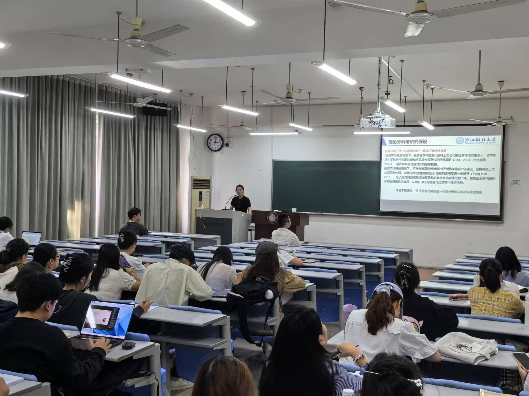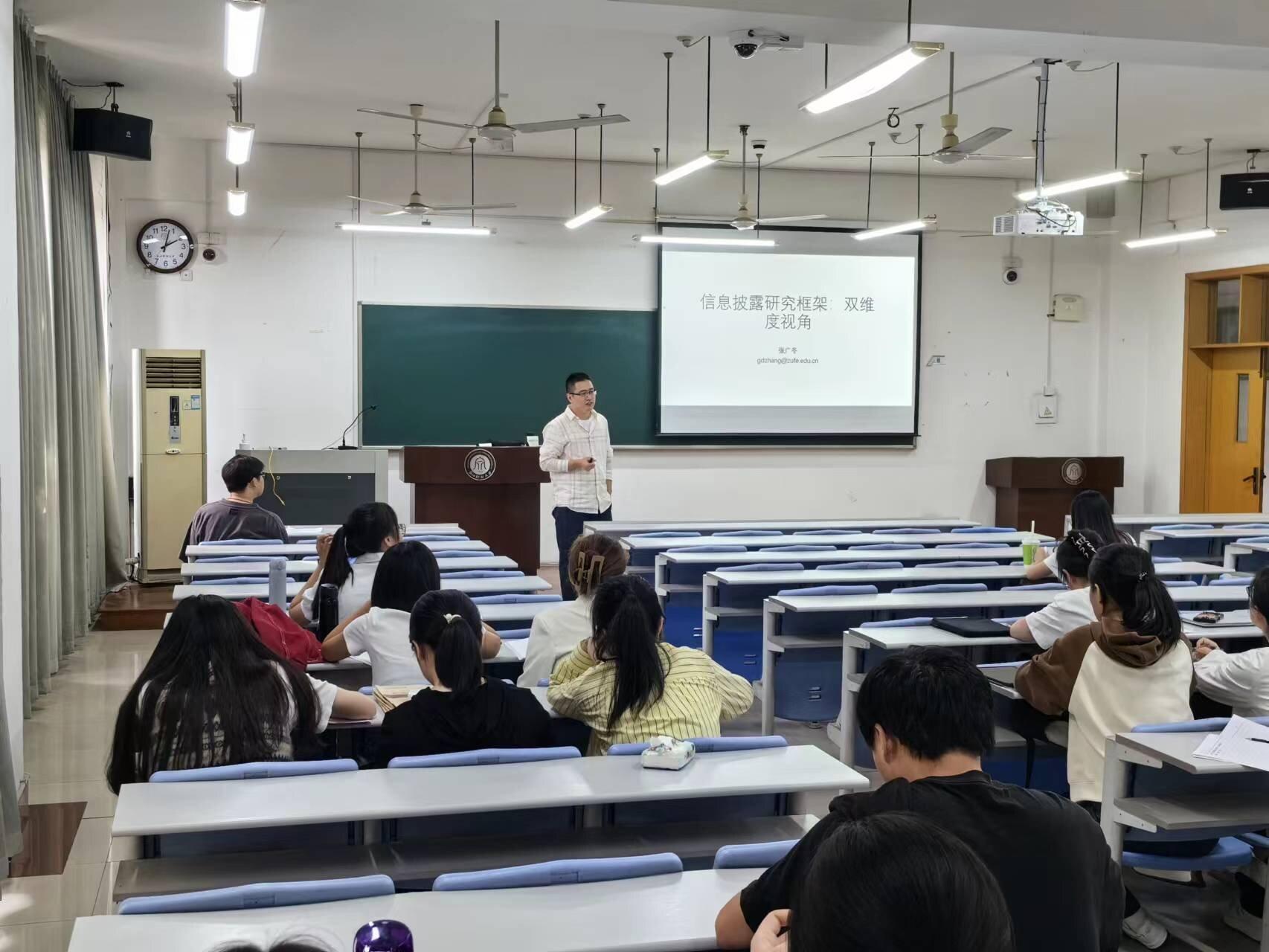 为促进研究生自主开展学术交流活动,提高研究生科研创新能力,锻炼研究锐度,“会计学院学术前沿”第7期(总第63期)于2023年10月19日下午在学院楼205教室举行。本次学术前沿,由张广冬博士进行主题演讲,22级研究生刘铭、董雯霄两位硕士研究生进行了论文分享,会计学院22级和23级全体会计学硕研究生、浙研院研究生以及部分本科生参加本次学术前沿活动。