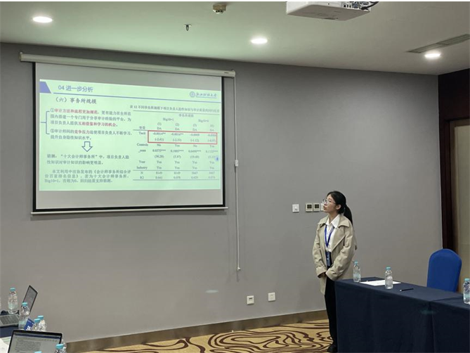我院邓川教授和21级会计学硕士研究生何伟丽参加了本次线下会议,在“审计师/客户特征与审计质量”专题平行论坛上,何伟丽汇报了与导师合作学术论文《审计项目负责人隐性知识、事务所质量管理和审计质量》,得到与会老师的点评并获得相应的改进意见。我院研究生积极与参加学术会议的老师交流观点,不仅提升了其批判性思维和分析能力,也拓宽了其对审计领域最新趋势和发展的理解,受益匪浅。