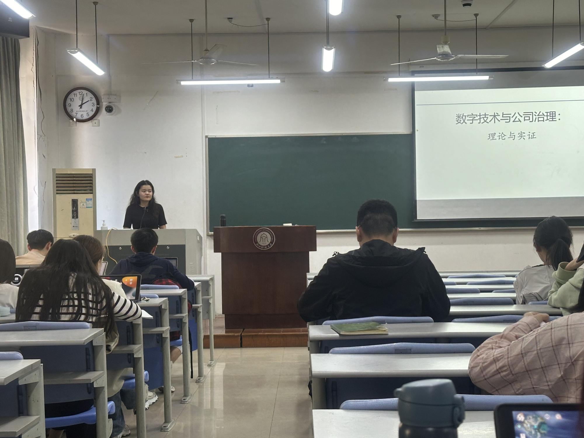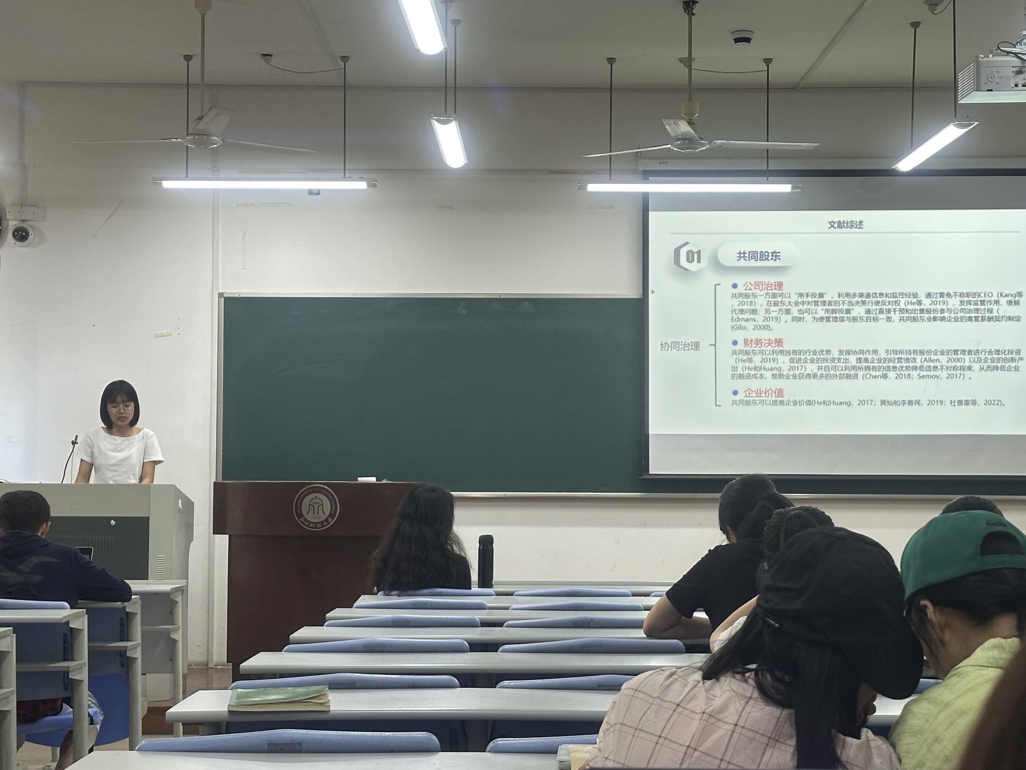 为促进研究生自主开展学术交流活动,提高研究生科研创新能力,锻炼研究锐度,“会计学院学术前沿”第64期于2023年11月2日下午在学院楼205教室举行。本次学术前沿,由博士王彩进行主题演讲,22级研究生黄青熠、高瑞远两位同学进行了论文分享,会计学院22级和23级全体会计学硕研究生、浙研院部分研究生以及部分本科生参加本次学术前沿活动。