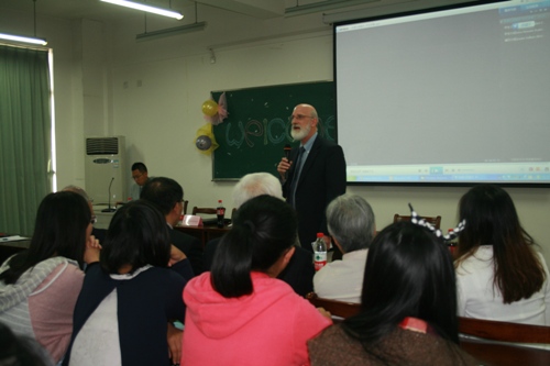 10月20日上午,Dominic Giroux校长一行七人来到会计学院,分别与等候在两个教室的2013级和2012级“中加班”全体同学见面。Dominic Giroux校长详尽地向同学们介绍了劳伦森大学的教育、科研、大学生活,以及加拿大美丽的自然景观;鼓励同学们走出校门、国门,参与社团、实习等实践,做到知行合一,更好的提升自我的综合素质。对于12级同学而言,去年代表团来访并与同学们亲切交谈的情景依然记忆犹新。Dominic Giroux校长这次除了重点介绍了中加班学生的宿舍建设以及赴劳伦森大学的修课情况,更多的是聆听同学们的踊跃提问,并与代表团其他成员一起耐心地解答了同学们提出的关于学习、学科以及生活等问题。中加班同学们有趣可爱的提问,代表团成员们风趣耐心的解答,使现场的气氛显得格外轻松、活跃。会后,同学们向代表团们送上礼物表达诚挚的欢迎和敬意。Dominic Giroux校长还主动提出要与两个班全体同学合影以作留念。