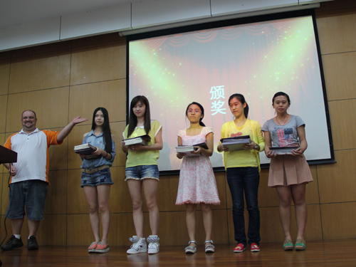 活动开始,于永生教授上台致辞,向在场中加班同学总结了此次暑期特训营的概况。为期两周的暑期英语培训开展了Intermediate Listening Comprehension, Intermediate Spoken English, Critical Reading等一系列课程。所有课程均由本校最优秀的外语教师和外籍专家授课,在听、说、读、写、译、文化知识等方面对同学们进行高强度英语强化训练;同时辅以影视欣赏、英美文化趣味研讨等开放式课堂,提升同学们的学习兴趣和英美文化素养。中加班同学也非常刻苦努力,积极配合老师们实施教学计划,注重学习听、说、读、写各个方面,不断提高着自身的英语综合能力。这些异彩纷呈的课程活动,都淋漓尽致的展示了中加班同学独特的魅力。