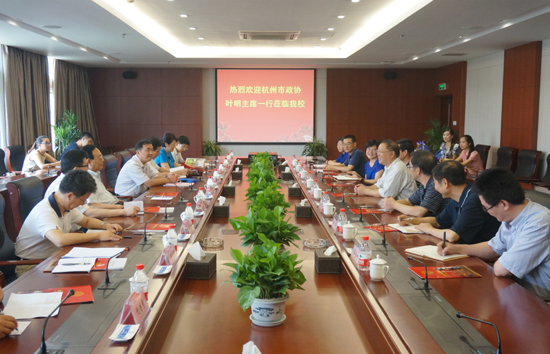 校党委书记韩翼祥首先对叶明主席一行莅临学校指导表示热烈欢迎,感谢杭州市政协对学校建设发展的支持,并希望杭州市政协能一如既往支持学校建设。韩书记介绍了学校情况和姚红委员情况。韩书记表示,姚红作为市政协委员,学校对她充满期待,希望她作为桥梁,能加强杭州市政协和我校的沟通。
