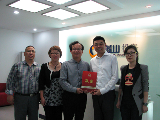 黄建新副校长首先代表学校对王晓明校友创办的蓝山投资所取得的辉煌成就表示衷心祝贺,并希望王晓明校友能够继续支持和关心母校发展,在人才培养、实习实践基地建设、产学研结合等方面与学校广泛合作,实现共同发展。最后,他盛情邀请王晓明校友回母校参加11月8日母校四十周年校庆,并为他送上校庆邀请函。