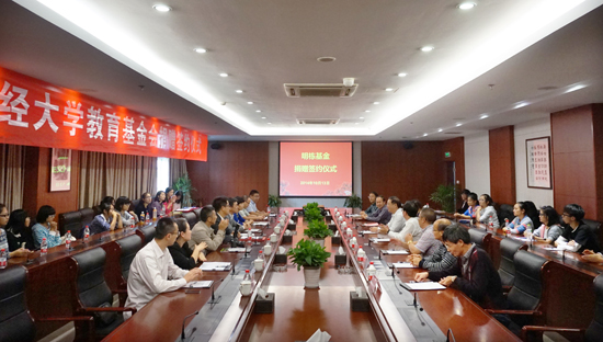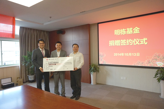 10月13日下午,我校隆重举行“明栋基金”捐赠签约仪式。校党委书记、教育基金会理事长韩翼祥,副校长、教育基金会秘书长黄建新,原金融学院院长楼远,“明栋基金”捐赠者王晓明、楼栋,会计学院、金融学院领导以及相关职能部门负责人出席了此次捐赠仪式。