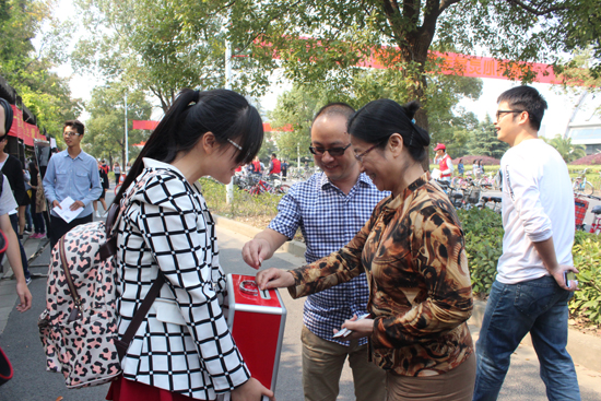 10月14日,由我校“一元钱”工程基金会主办,金融学院团委承办的以“职梦金秋 研路起航”为主题的献爱心活动在学校西门文化长廊举行。校党委副书记王宇航,校团委相关负责人莅临现场予以指导,和众多同学一起,献出了自己的爱心。